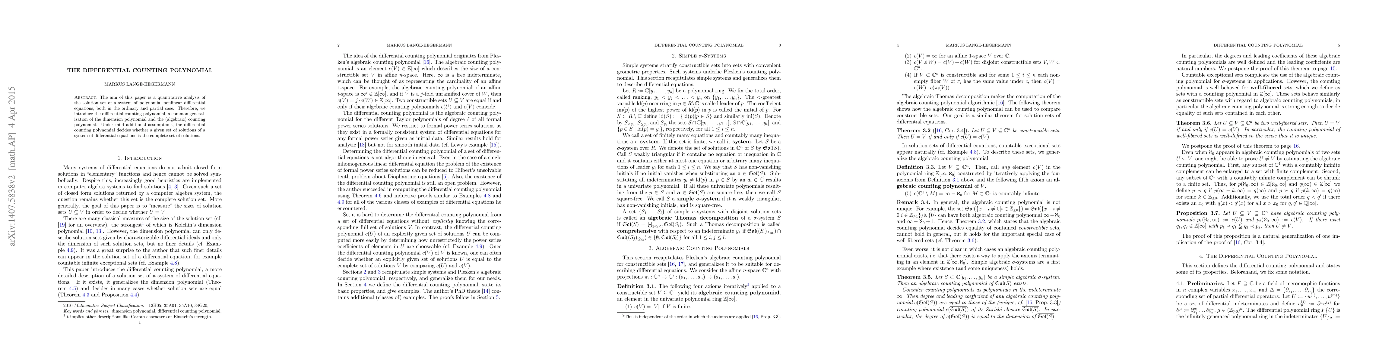 This paper quantitatively analyzes the solution sets of polynomial nonlinear differential equations using a new concept called the differential counting polynomial, which generalizes the dimension and algebraic counting polynomials to determine if a solution set is complete.