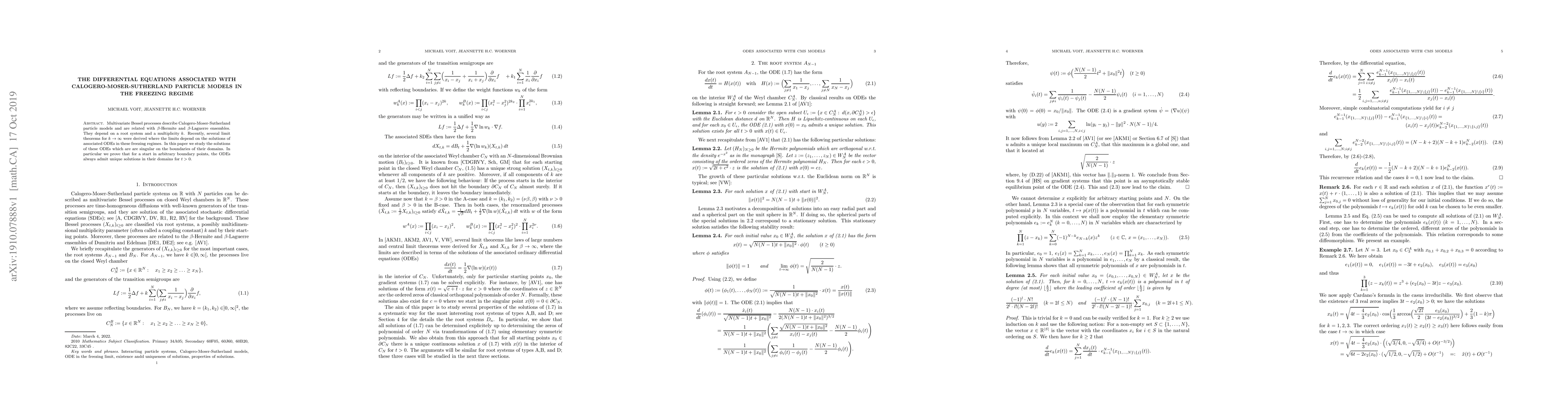 This paper investigates the solutions of ordinary differential equations (ODEs) associated with Calogero-Moser-Sutherland particle models in the freezing regime, proving the existence of unique solutions for $t>0$ starting from arbitrary boundary points. These ODEs arise from multivariate Bessel processes linked to $\beta$-Hermite and $\beta$-Laguerre ensembles.