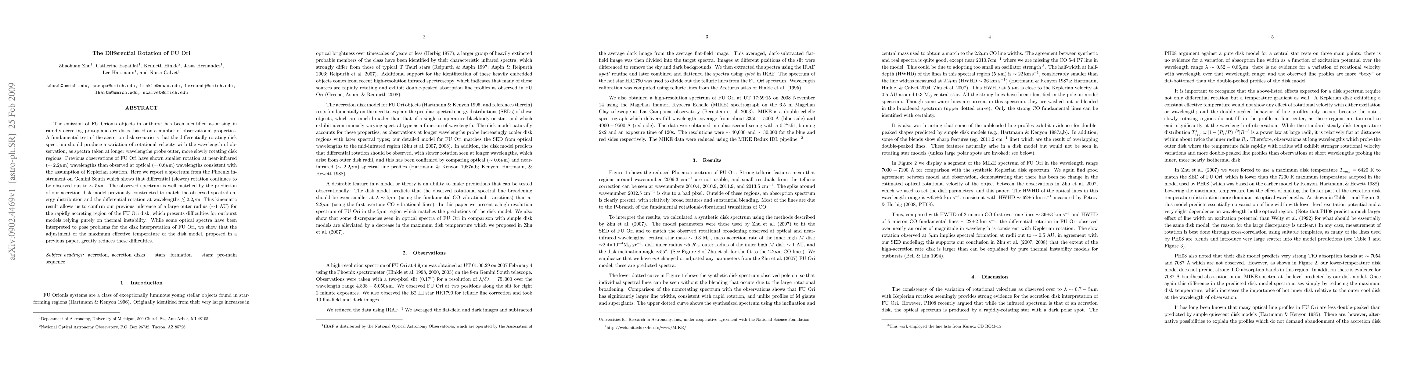 This paper confirms that FU Ori's rapidly accreting protoplanetary disk exhibits differential rotation, with slower rotation observed at longer wavelengths, extending to ~5 microns. The findings support the accretion disk model and suggest a large outer radius for the accretion region, challenging models based solely on thermal instability.