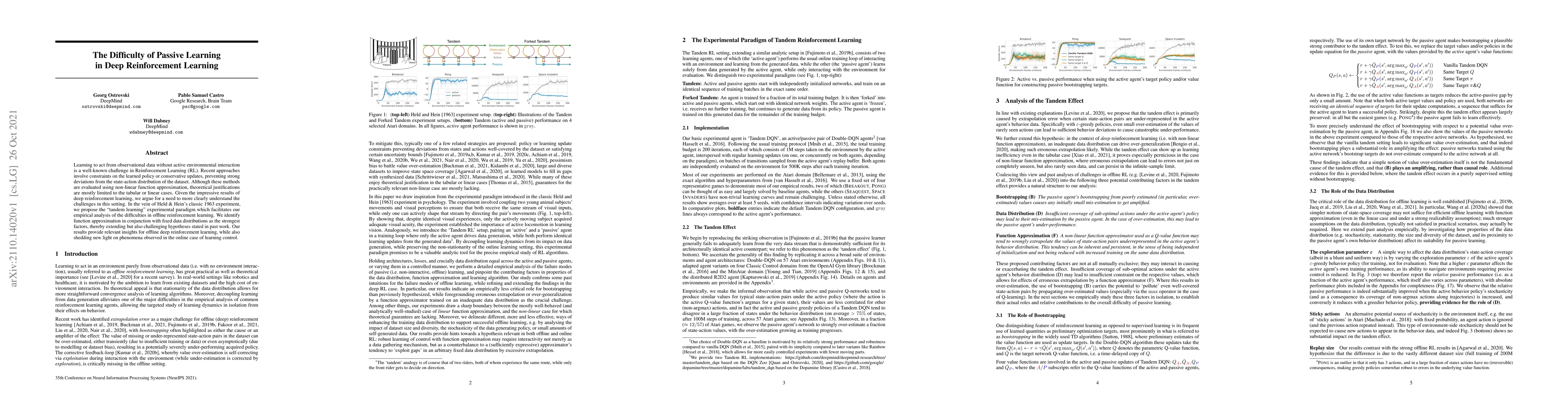 This paper investigates the challenges of passive learning in deep reinforcement learning, proposing a "tandem learning" paradigm to analyze offline learning difficulties. It identifies function approximation and fixed data distributions as key factors, extending previous hypotheses and providing insights for offline deep reinforcement learning.