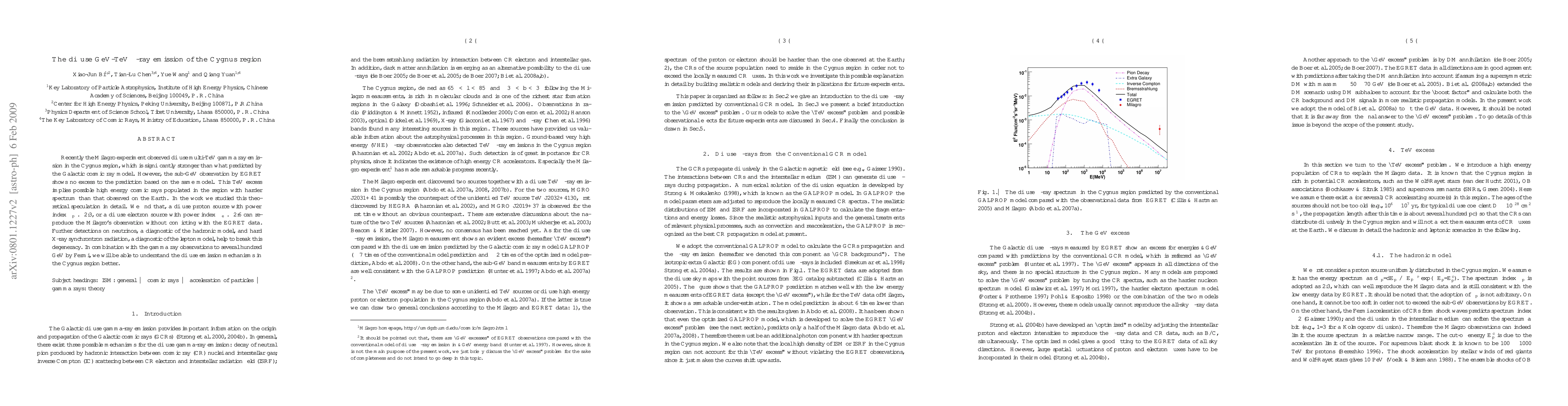 The paper presents a detailed analysis of theoretical speculations regarding high-energy cosmic rays in the Cygnus region, proposing specific proton and electron source models to explain TeV gamma-ray emissions.