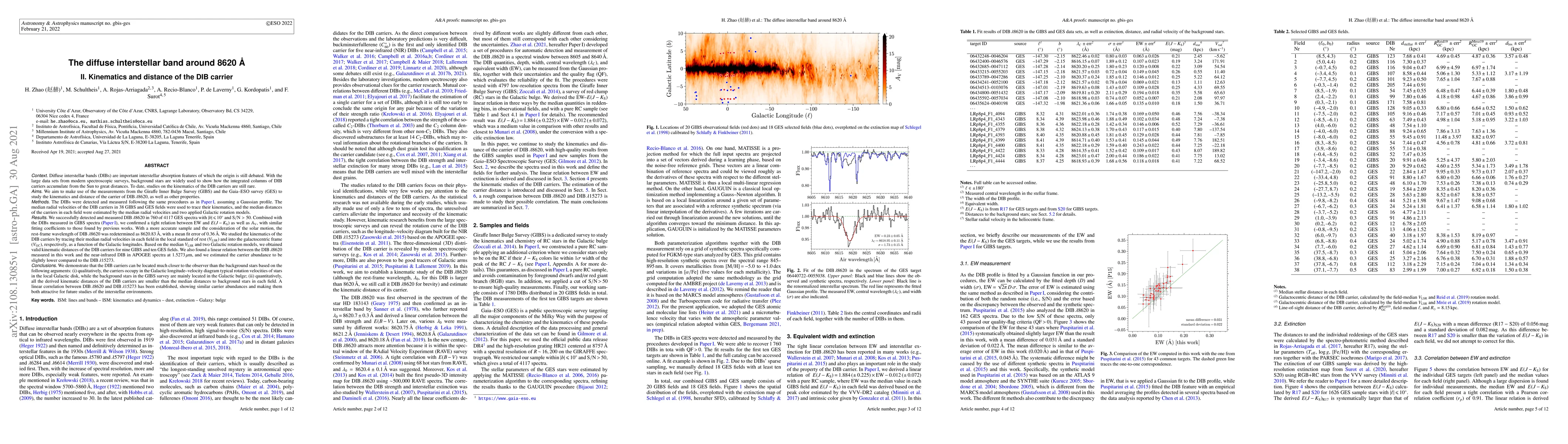 This paper investigates the kinematics and distance of the diffuse interstellar band (DIB) at 8620 Å using data from the GIBS and GES surveys. The study finds a tight relation between DIB strength and extinction, redetermines the rest-frame wavelength, and demonstrates that DIB carriers are kinematically closer to observers than background stars, supporting their location in the local Galactic disk.