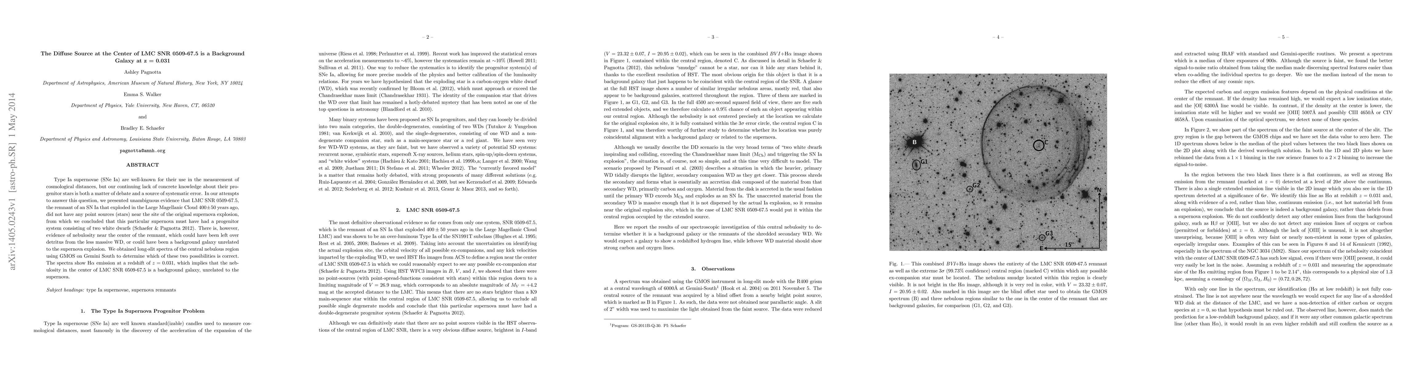 This paper concludes that nebulosity at the center of LMC SNR 0509-67.5, a remnant of a Type Ia supernova, is not related to the explosion but is instead a background galaxy at a redshift of z = 0.031. This finding supports the theory that the progenitor system of the supernova consisted of two white dwarfs.