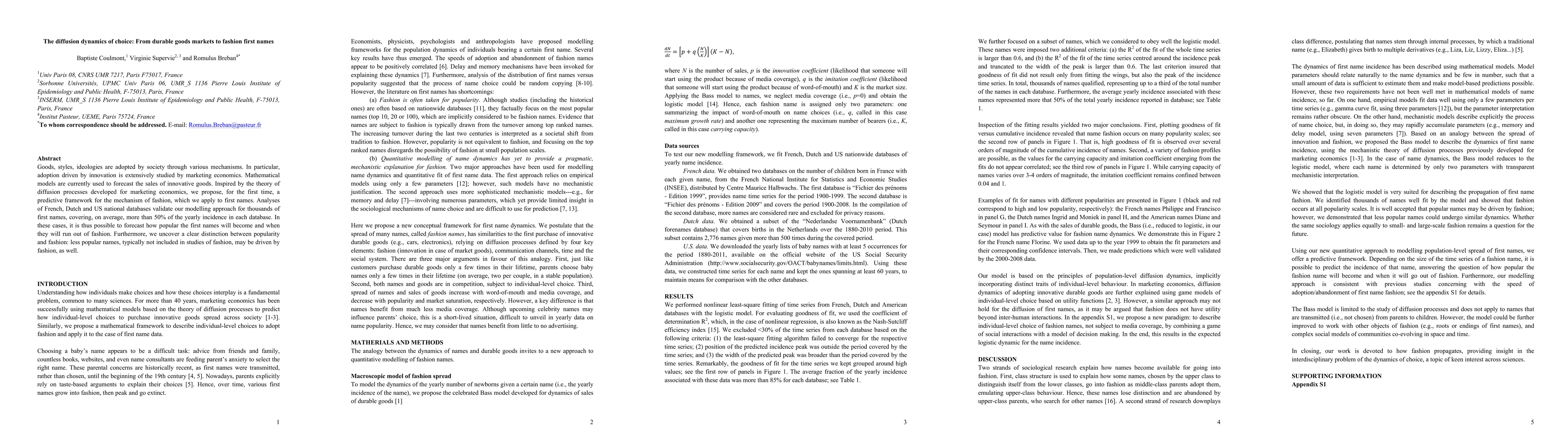 Goods, styles, ideologies are adopted by society through various mechanisms. In particular, adoption driven by innovation is extensively studied by marketing economics. Mathematical models are currently used to forecast the sales of innovative goods. Inspired by the theory of diffusion processes developed for marketing economics, we propose, for the first time, a predictive framework for the mechanism of fashion, which we apply to first names. Analyses of French, Dutch and US national databases validate our modelling approach for thousands of first names, covering, on average, more than 50% of the yearly incidence in each database. In these cases, it is thus possible to forecast how popular the first names will become and when they will run out of fashion. Furthermore, we uncover a clear distinction between popularity and fashion: less popular names, typically not included in studies of fashion, may be driven by fashion, as well.