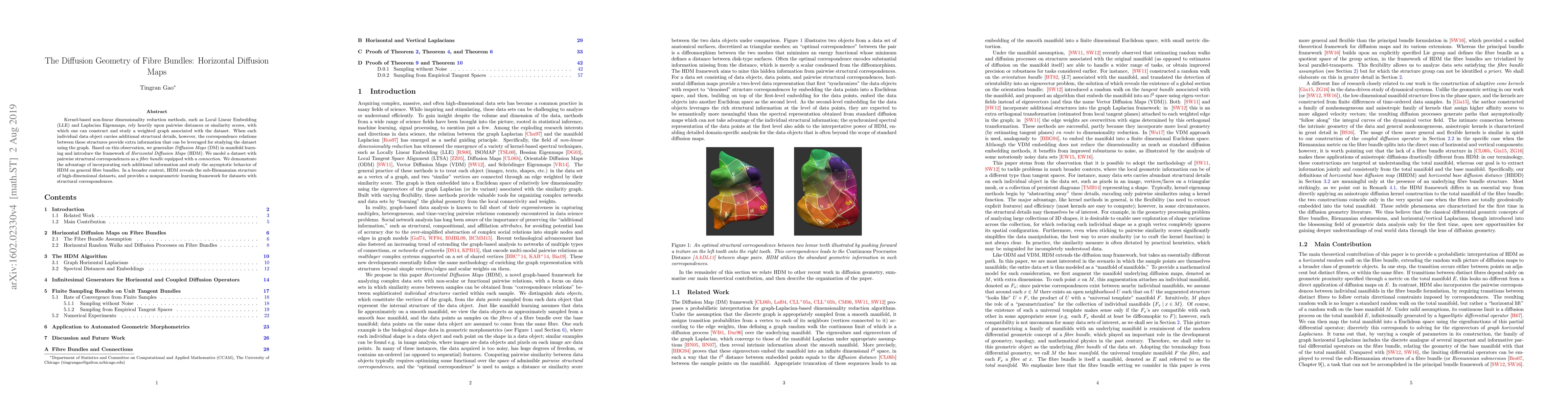 Kernel-based non-linear dimensionality reduction methods, such as Local Linear Embedding (LLE) and Laplacian Eigenmaps, rely heavily upon pairwise distances or similarity scores, with which one can construct and study a weighted graph associated with the dataset. When each individual data object carries additional structural details, however, the correspondence relations between these structures provide extra information that can be leveraged for studying the dataset using the graph. Based on this observation, we generalize Diffusion Maps (DM) in manifold learning and introduce the framework of Horizontal Diffusion Maps (HDM). We model a dataset with pairwise structural correspondences as a fibre bundle equipped with a connection. We demonstrate the advantage of incorporating such additional information and study the asymptotic behavior of HDM on general fibre bundles. In a broader context, HDM reveals the sub-Riemannian structure of high-dimensional datasets, and provides a nonparametric learning framework for datasets with structural correspondences.