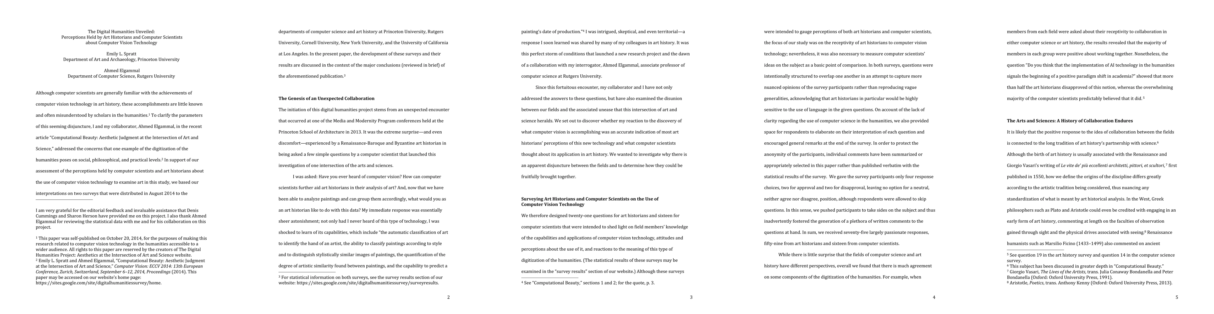 Although computer scientists are generally familiar with the achievements of computer vision technology in art history, these accomplishments are little known and often misunderstood by scholars in the humanities. To clarify the parameters of this seeming disjuncture, we have addressed the concerns that one example of the digitization of the humanities poses on social, philosophical, and practical levels. In support of our assessment of the perceptions held by computer scientists and art historians about the use of computer vision technology to examine art, we based our interpretations on two surveys that were distributed in August 2014. In this paper, the development of these surveys and their results are discussed in the context of the major philosophical conclusions of our research in this area to date.