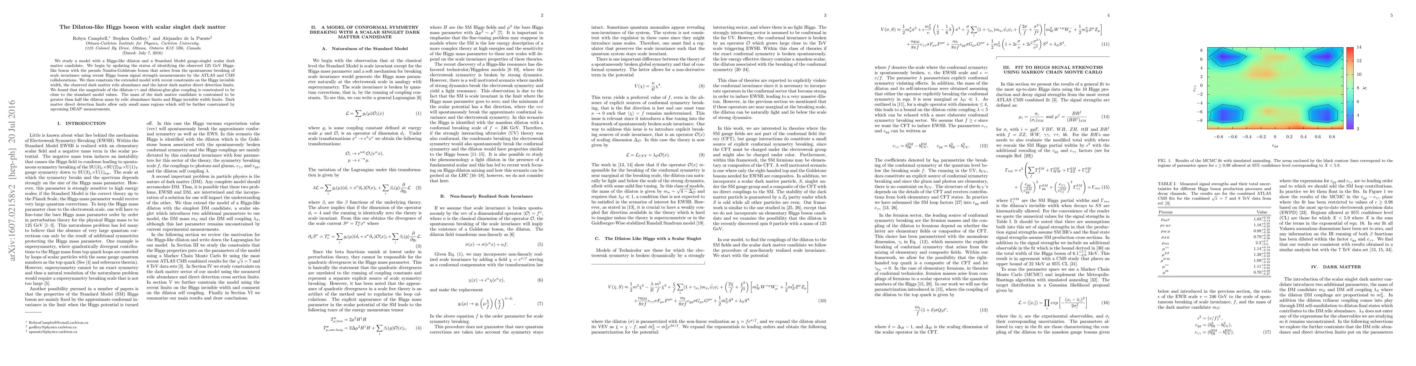We study a model with a Higgs-like dilaton and a Standard Model gauge-singlet scalar dark matter candidate. We begin by updating the status of identifying the observed 125 GeV Higgs-like boson with the pseudo Nambu-Goldstone boson that arises from the spontaneous breaking of scale invariance using recent Higgs boson signal strength measurements by the ATLAS and CMS collaborations. We then constrain the extended model with recent constraints on the Higgs invisible width, the observed dark matter relic abundance and the latest dark matter direct detection limits. We found that the magnitude of the dilaton-$\gamma\gamma$ and dilaton-glue-glue coupling is constrained to be close to the standard model values. The mass of the dark matter candidate is contrained to be greater than half the dilaton mass by relic abundance limits and Higgs invisible width limits. Dark matter direct detection limits allow only small mass regions which will be further constrained by upcoming DEAP measurements.