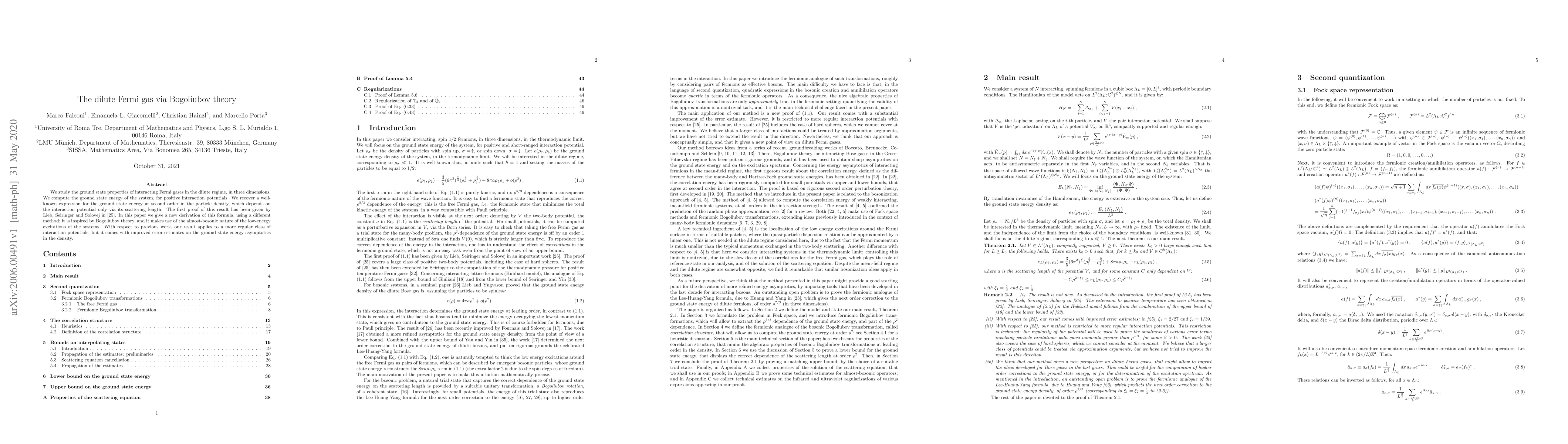 This paper uses Bogoliubov theory to derive a formula for the ground state energy of dilute Fermi gases in 3D, improving error estimates over previous work.