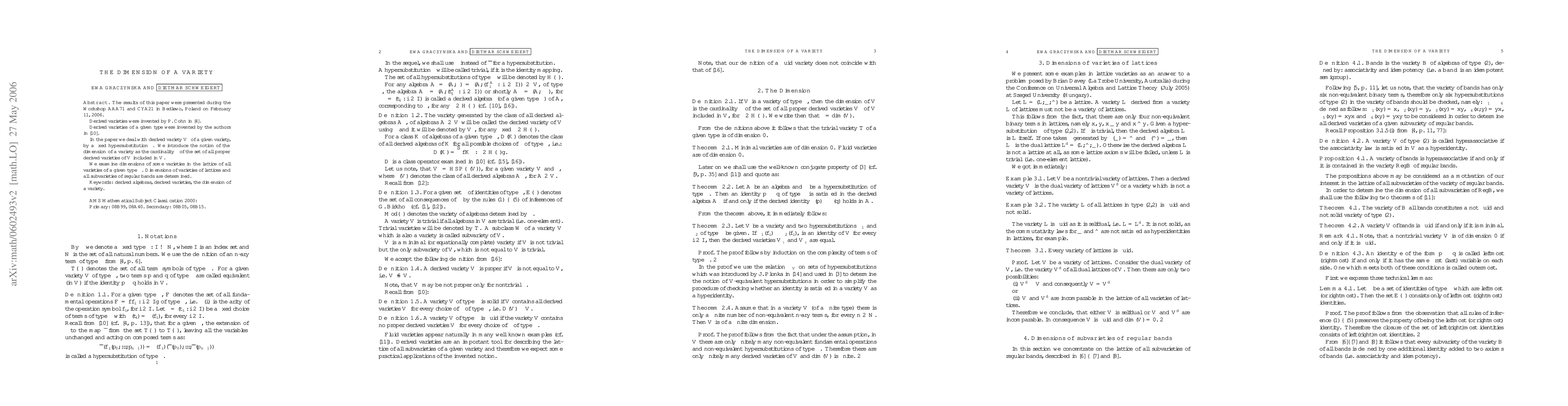 This paper introduces a new concept of 'dimension of a variety' defined as the number of proper 'derived subvarieties' of the same kind. It calculates this dimension for varieties of lattices and regular bands, providing insights into the structure of general algebraic systems.