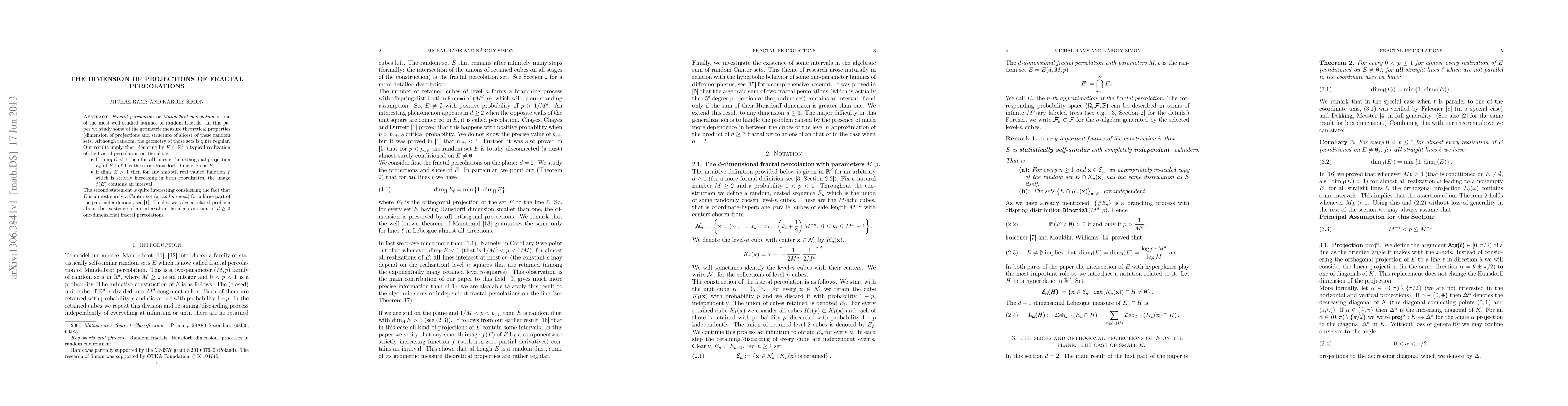 This paper studies geometric properties of fractal percolations, finding that typical realizations have the same Hausdorff dimension in projections or contain intervals for certain conditions.