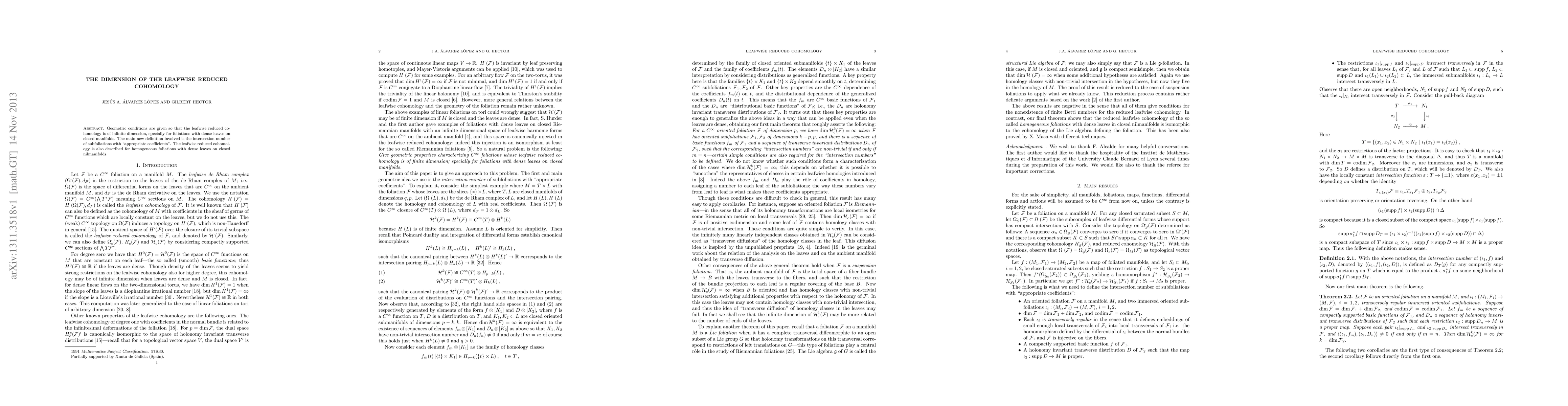 Geometric conditions are given so that the leafwise reduced cohomology is of infinite dimension, specially for foliations with dense leaves on closed manifolds. The main new definition involved is the intersection number of subfoliations with "appropriate coefficients". The leafwise reduced cohomology is also described for homogeneous foliations with dense leaves on closed nilmanifolds.