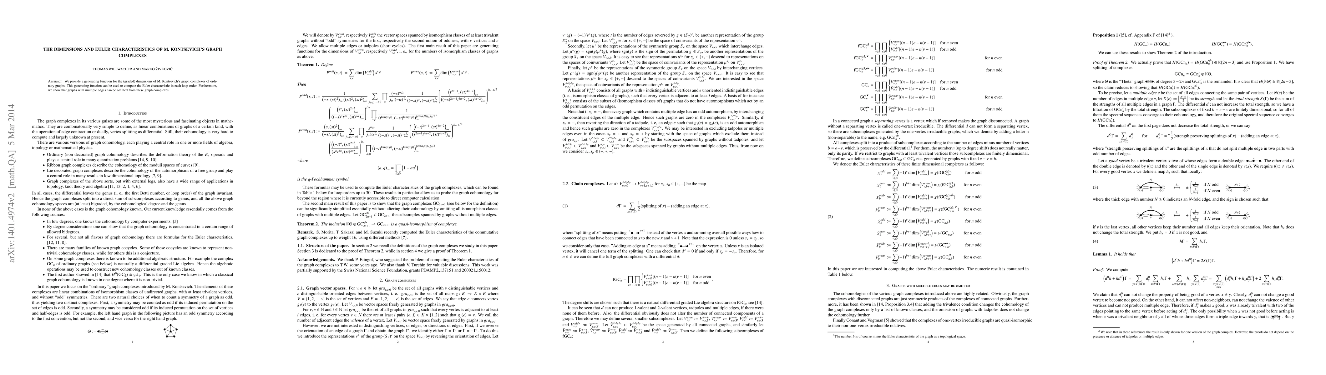 Summary: This paper presents a generating function for the dimensions of M. Kontsevich's graph complexes and uses it to compute Euler characteristics, demonstrating that graphs with multiple edges do not affect these computations.