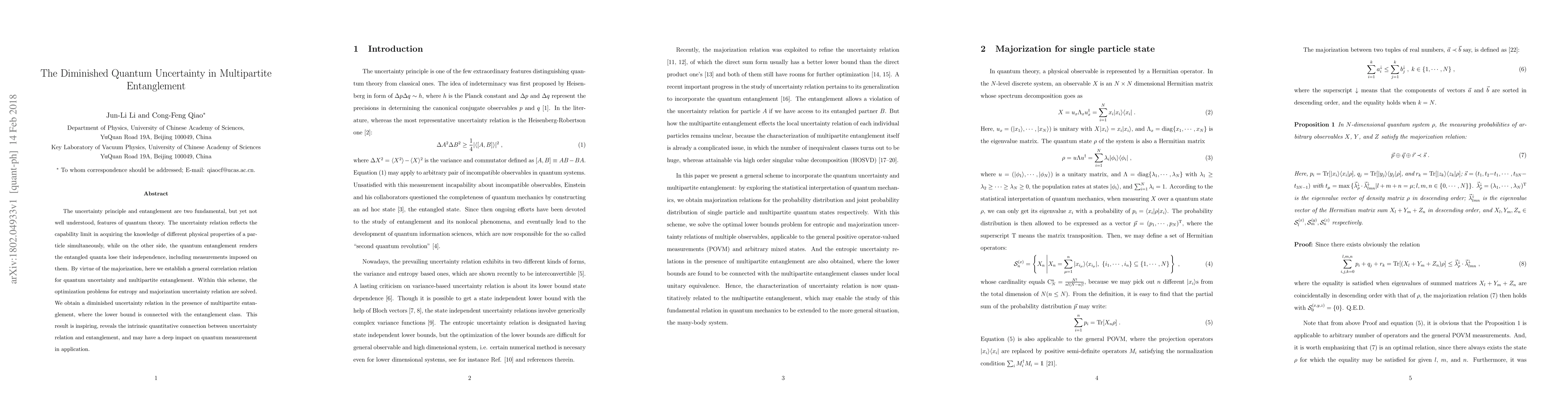 A new study establishes a correlation between quantum uncertainty and multipartite entanglement, revealing a 'diminished' uncertainty principle in entangled systems, which may have significant implications for quantum measurement.