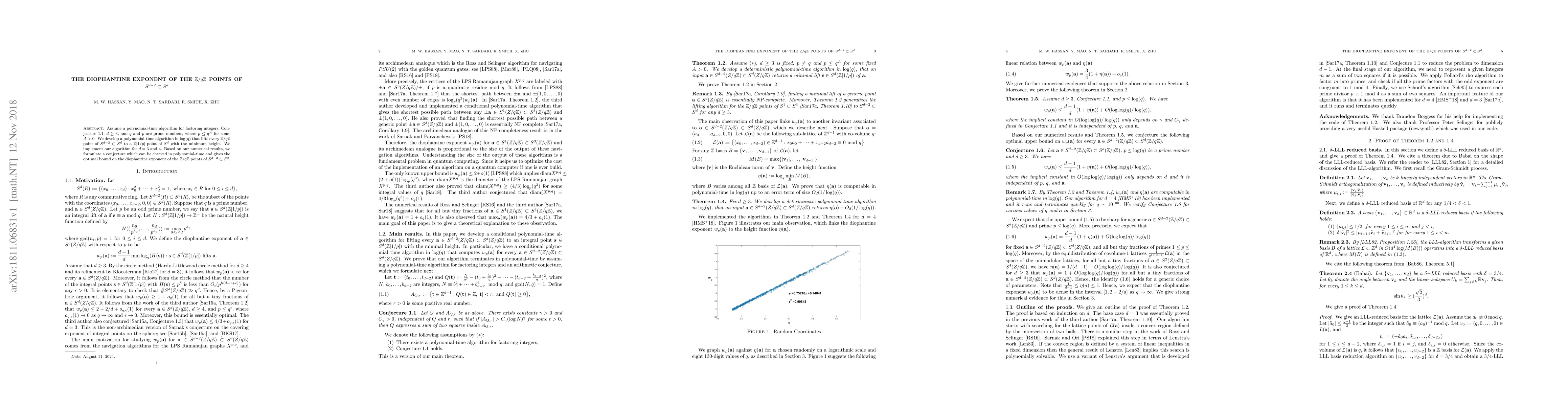 This paper presents a polynomial-time algorithm to lift $\mathbb{Z}/q\mathbb{Z}$ points on $S^{d-2}$ to $\mathbb{Z}[1/p]$ points on $S^d$ with minimal height, under the assumption of a polynomial-time integer factorization algorithm. The authors implement and test their algorithm for $d=3$ and $4$, leading to a conjecture about the optimal diophantine exponent for these points.