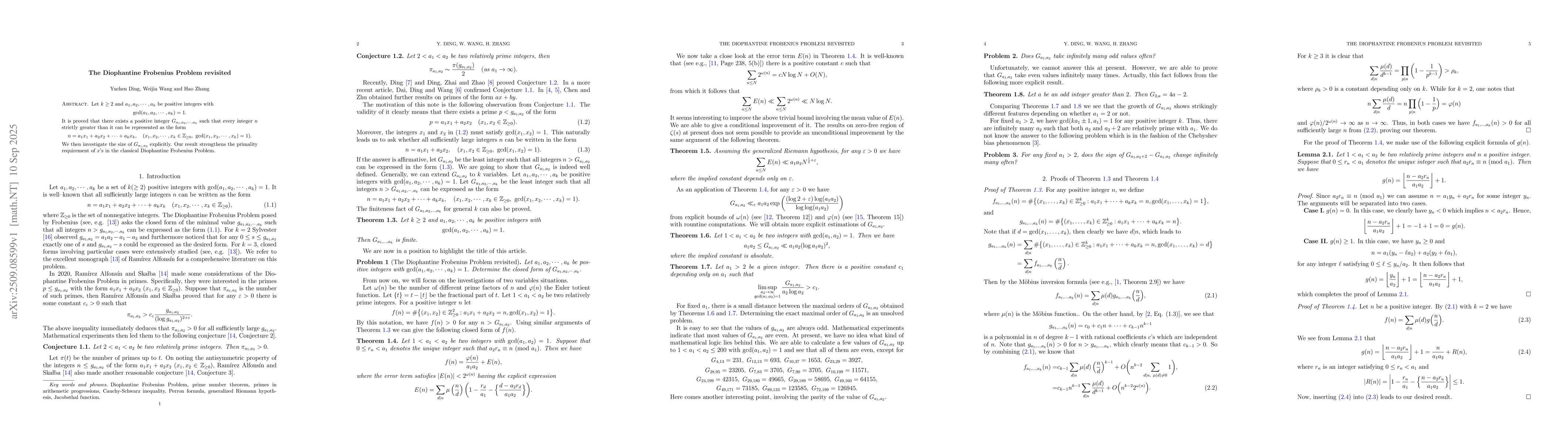 Let $k\ge 2$ and $a_1, a_2, \cdots, a_k$ be positive integers with \[ \gcd(a_1, a_2, \cdots, a_k)=1. \] It is proved that there exists a positive integer $G_{a_1, a_2, \cdots, a_k}$ such that every integer $n$ strictly greater than it can be represented as the form \[ n=a_1x_1+a_2x_2+\cdots+a_kx_k, \quad (x_1, x_2, \cdots, x_k\in\mathbb{Z}_{\ge 0},~\gcd(x_1, x_2, \cdots, x_k)=1). \] We then investigate the size of $G_{a_1, a_2}$ explicitly. Our result strengthens the primality requirement of $x$'s in the classical Diophantine Frobenius Problem.