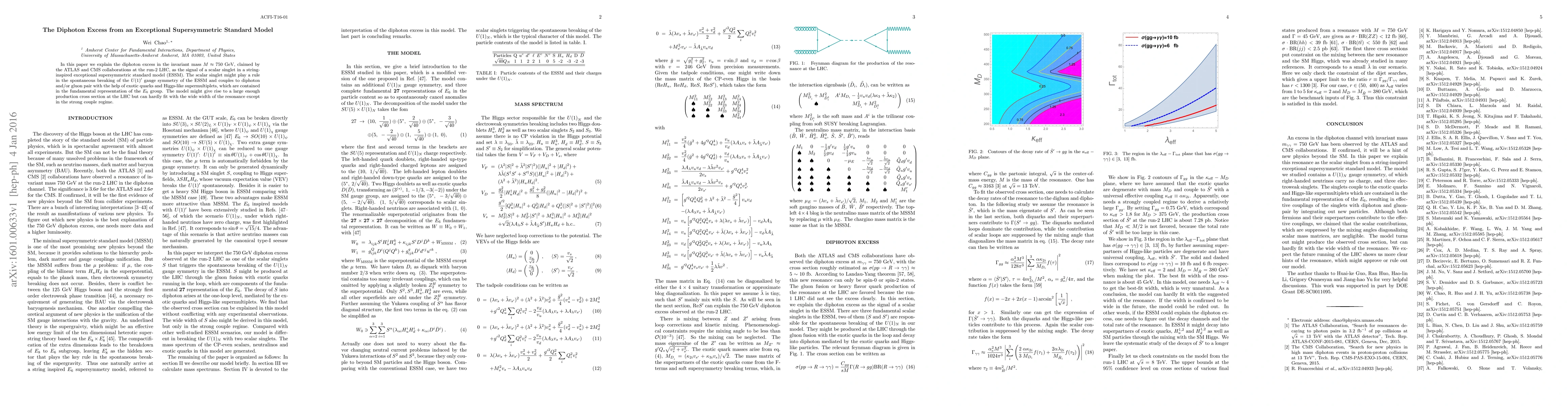 In this paper we explain the diphoton excess in the invariant mass M $\approx$ 750 GeV , claimed by the ATLAS and CMS collaborations at the run-2 LHC, as the signal of a scalar singlet in a string inspired exceptional supersymmetric standard model (ESSM). The scalar singlet might play a rule in the spontaneous breaking of the $U(1)^\prime$ gauge symmetry of the ESSM and couples to diphoton and/or gluon pair with the help of exotic quarks and Higgs-like supermultiplets, which are contained in the fundamental representation of the $E_6$ group. The model might give rise to a large enough production cross section at the LHC but can hardly fit with the wide width of the resonance except in the strong couple regime.