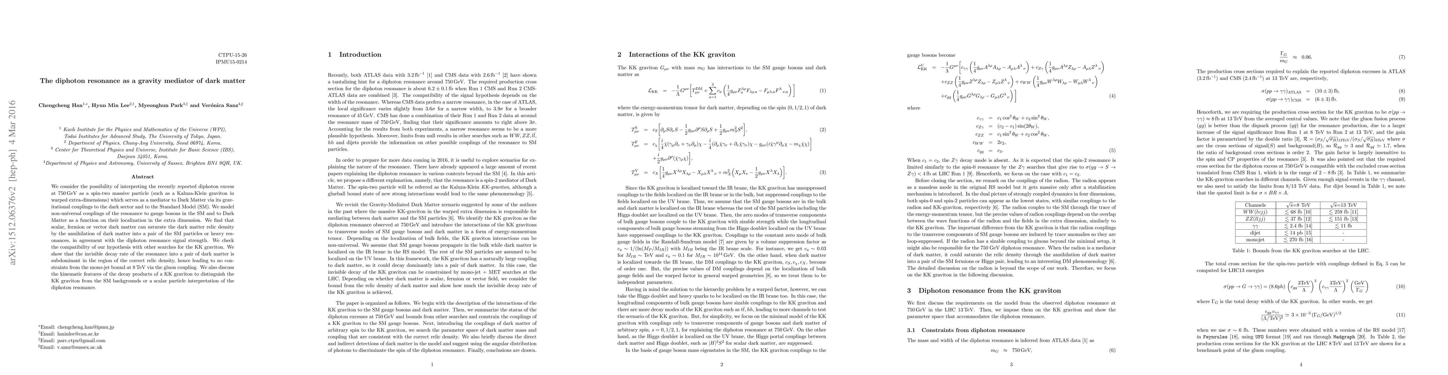 This paper explores the possibility that the diphoton excess at 750 GeV is a Kaluza-Klein graviton mediating dark matter through gravitational interactions. It finds that various dark matter candidates can match relic density predictions while being consistent with other experimental searches, and discusses distinguishing features of the KK graviton's decay products.