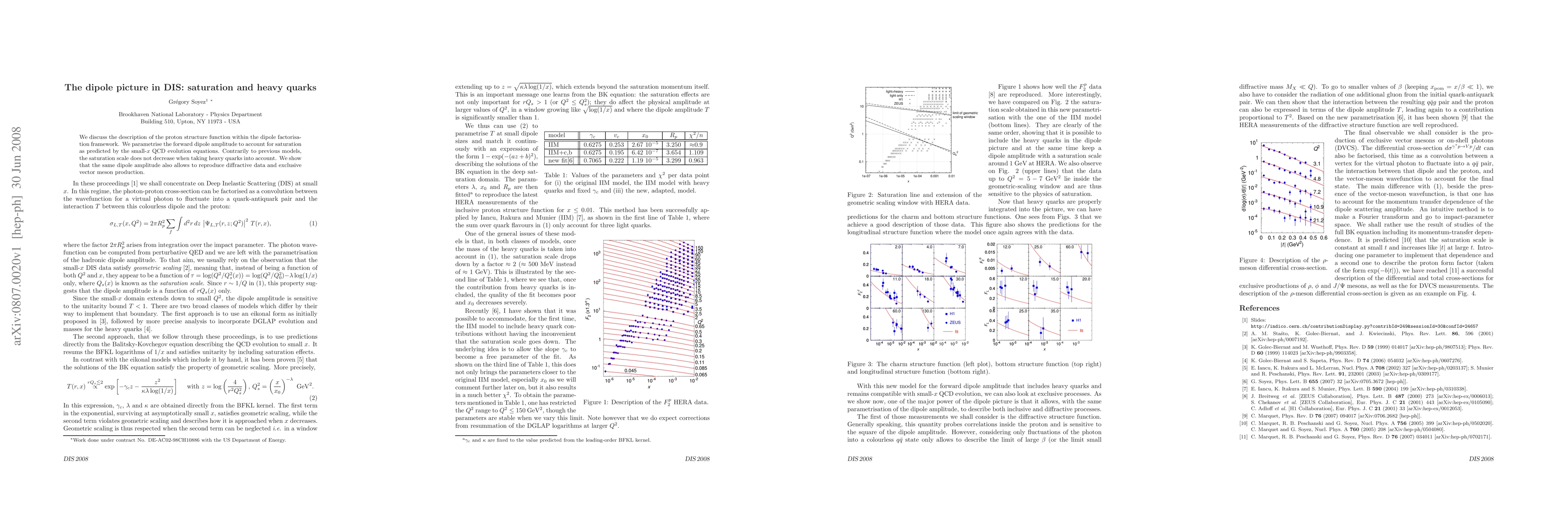 This paper explores the proton structure function using the dipole factorization framework, showing that saturation effects predicted by small-x QCD equations are maintained even with heavy quarks. The same dipole amplitude model successfully reproduces diffractive data and exclusive vector meson production.