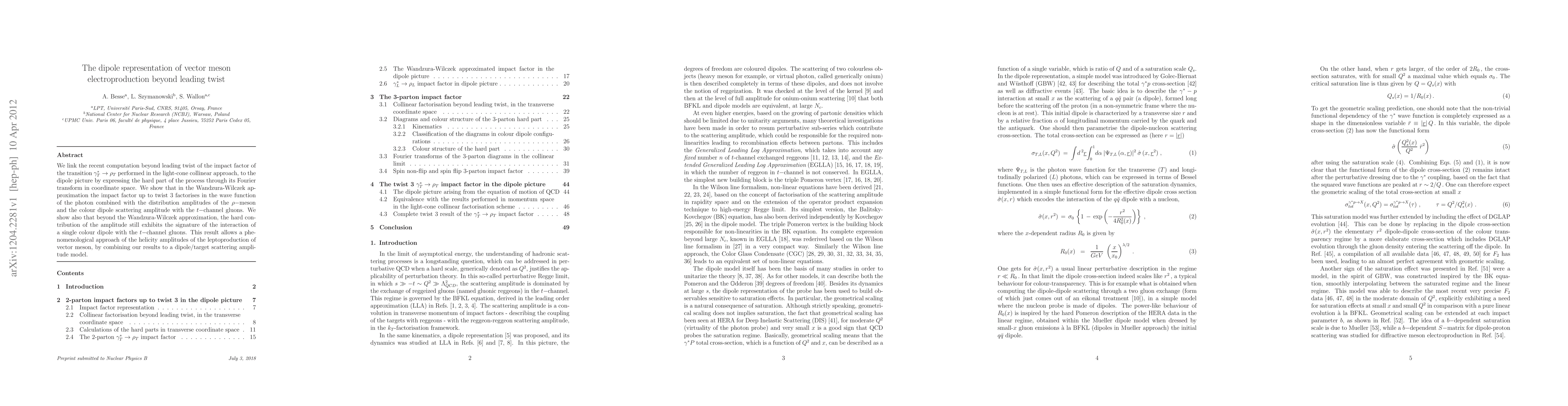 This paper connects the computation of vector meson electroproduction beyond leading twist to the dipole picture, showing that the impact factor factorizes in the photon's wave function and the rho-meson's distribution amplitudes. It also demonstrates that the hard contribution retains the signature of a single colour dipole interacting with t-channel gluons, facilitating a phenomenological approach to vector meson leptoproduction.
