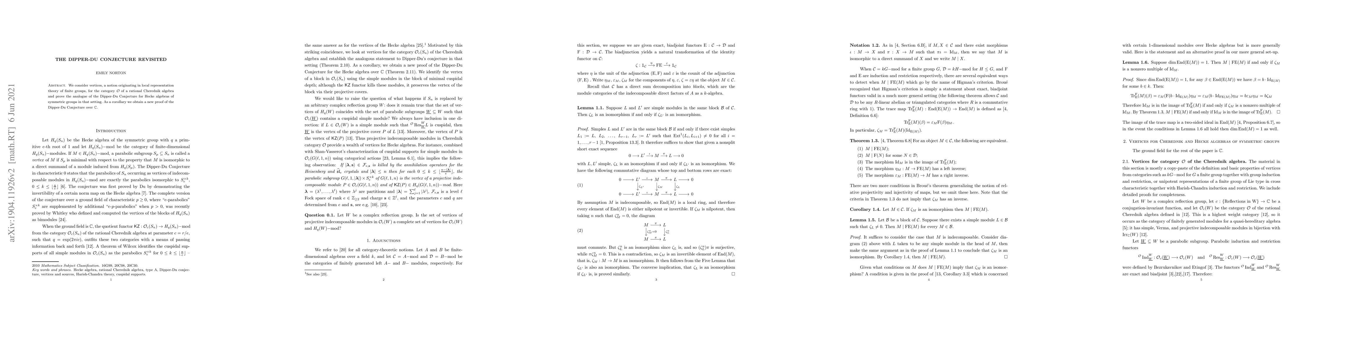 This paper proves the Dipper-Du Conjecture for Hecke algebras of symmetric groups in the context of rational Cherednik algebras, providing a new proof of the conjecture over $\mathbb{C}$ and extending the notion of vertices from local representation theory.