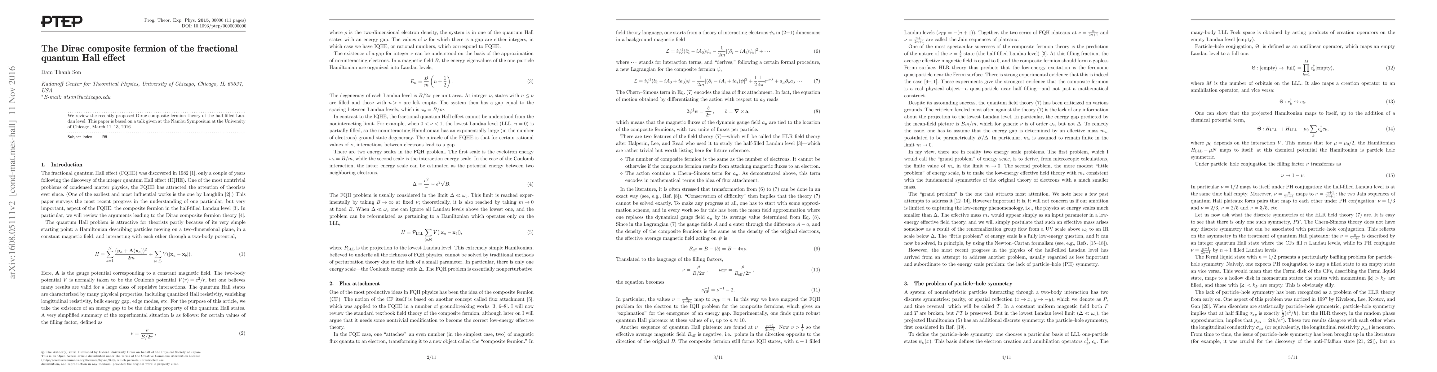 We review the recently proposed Dirac composite fermion theory of the half-filled Landau level. This paper is based on a talk given at the Nambu Symposium at University of Chicago, March 11-13, 2016.