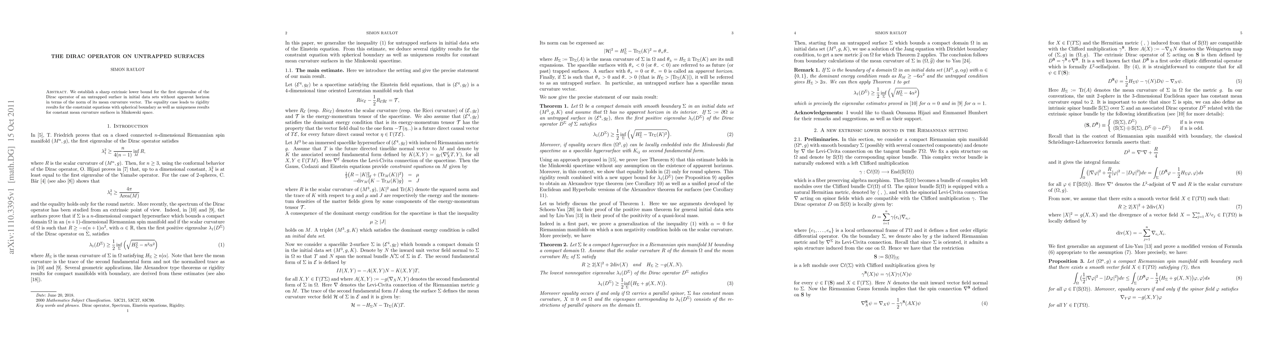 We establish a sharp extrinsic lower bound for the first eigenvalue of the Dirac operator of an untrapped surface in initial data sets without apparent horizon in terms of the norm of its mean curvature vector. The equality case leads to rigidity results for the constraint equations with spherical boundary as well as uniqueness results for constant mean curvature surfaces in Minkowski space.