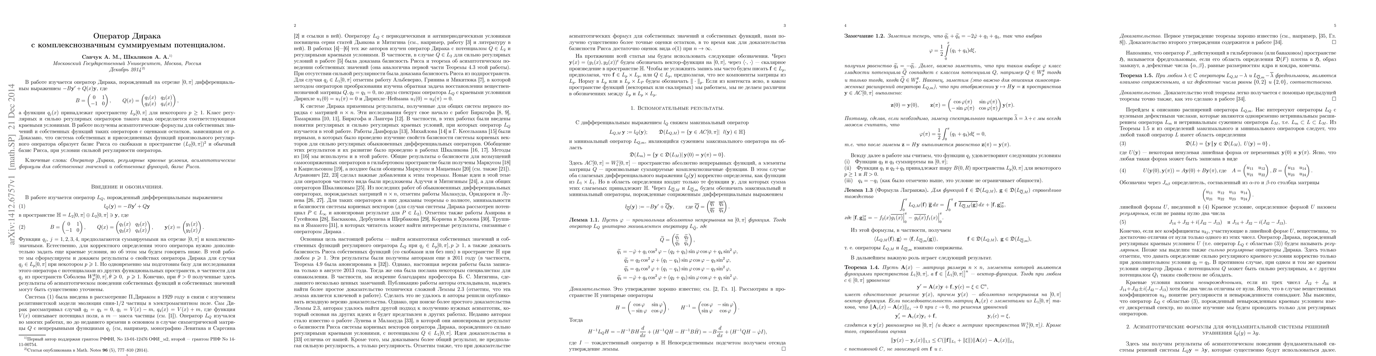 The paper deals with the Dirac operator generated on the finite interval $[0,\pi]$ by the differential expression $-B\mathbf{y}'+Q(x)\mathbf{y}$, where $$ B=\begin{pmatrix}0&1\\-1&0\end{pmatrix},\qquad Q(x)=\begin{pmatrix}q_1(x)&q_2(x)\\q_3(x)&q_4(x)\end{pmatrix}, $$ and the entries $q_j(x)$ belong to~$L_p[0,\pi]$ for some $p\geqslant 1$. The classes of regular and strongly regular operators of this form are defined, depending on the boundary conditions. The asymptotic formulas for the eigenvalues and eigenfunctions of such operators are obtained with remainders depending on~$p$. It it is proved that the system of eigen and associated functions of a regular operator forms a Riesz basis with parentheses in the space~$(L_2[0,\pi])^2$ and the usual Riesz basis, provided that the operator is strongly regular.