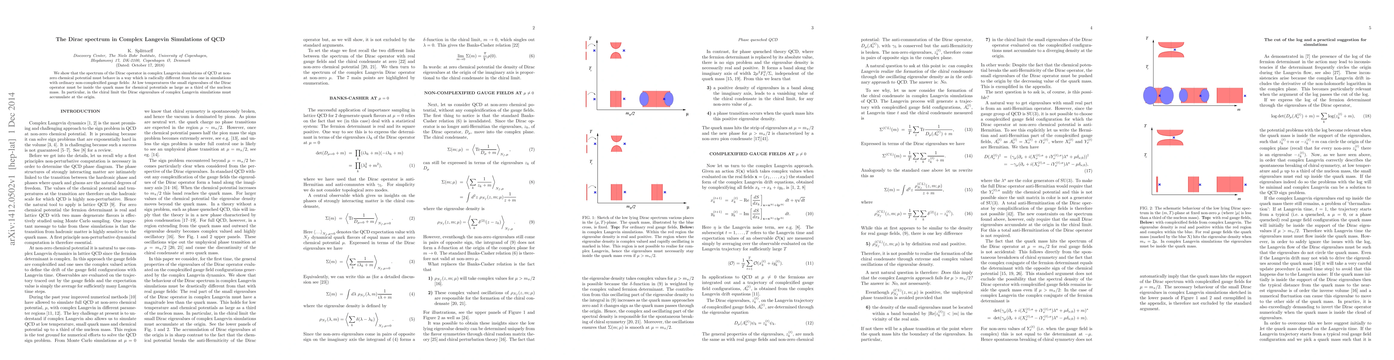 We show that the spectrum of the Dirac operator in complex Langevin simulations of QCD at non-zero chemical potential must behave in a way which is radically different from the one in simulations with ordinary non-complexified gauge fields: At low temperatures the small eigenvalues of the Dirac operator must be inside the quark mass for chemical potentials as large as a third of the nucleon mass. In particular, in the chiral limit the Dirac eigenvalues of complex Langevin simulations must accumulate at the origin.