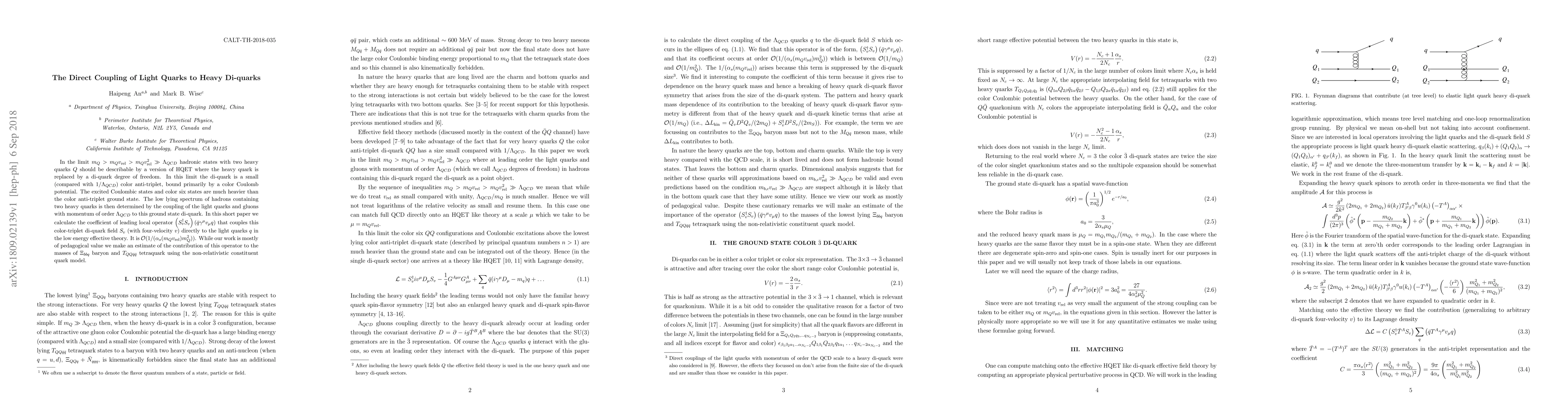 In the limit $m_Q >m_Q v_{\rm rel} > m_Q v_{\rm rel}^2 \gg \Lambda_{QCD}$ hadronic states with two heavy quarks $Q$ should be describable by a version of HQET where the heavy quark is replaced by a di-quark degree of freedom. In this limit the di-quark is a small (compared with $1/\Lambda_{QCD}$) color anti-triplet, bound primarily by a color Coulomb potential. The excited Coulombic states and color six states are much heavier than the color anti-triplet ground state. The low lying spectrum of hadrons containing two heavy quarks is then determined by the coupling of the light quarks and gluons with a momentum of order $\Lambda_{QCD}$ to this ground state di-quark. In this short paper we calculate the coefficient of leading local operator $\left( S_v^{\dagger} S_v\right) \left({\bar q} {\gamma^{\mu} v_{\mu} } q\right) $ that couples this color-triplet di-quark field $S_v$ (with four-velocity $v$) directly to the light quarks $q$ in the low energy effective theory. It is ${\cal O}(1/( \alpha_s(m_Q v_{\rm rel}) m_Q^2))$. While our work is mostly of pedagogical value we make an estimate of the contribution of this operator to the masses of $\Xi_{bbq}$ baryon and $T_{QQ{\bar q} {\bar q}}$ tetraquark using the non-relativistic constituent quark model.