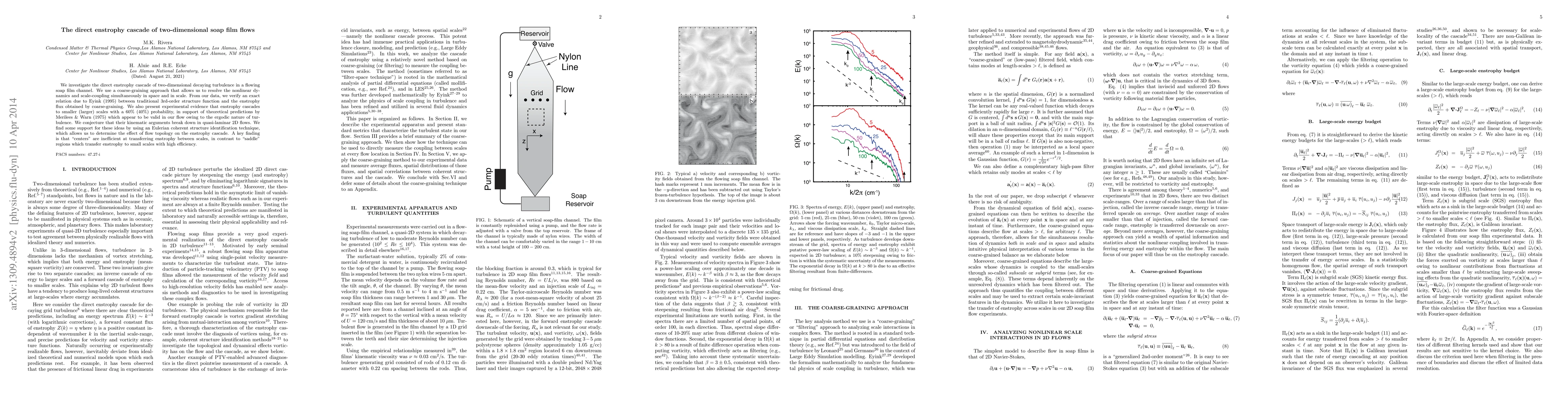 This paper investigates the direct enstrophy cascade in two-dimensional decaying turbulence within soap film flows, confirming theoretical predictions about the probabilistic nature of enstrophy transfer and identifying that "saddle" regions are more efficient at transferring enstrophy to smaller scales compared to "centers."