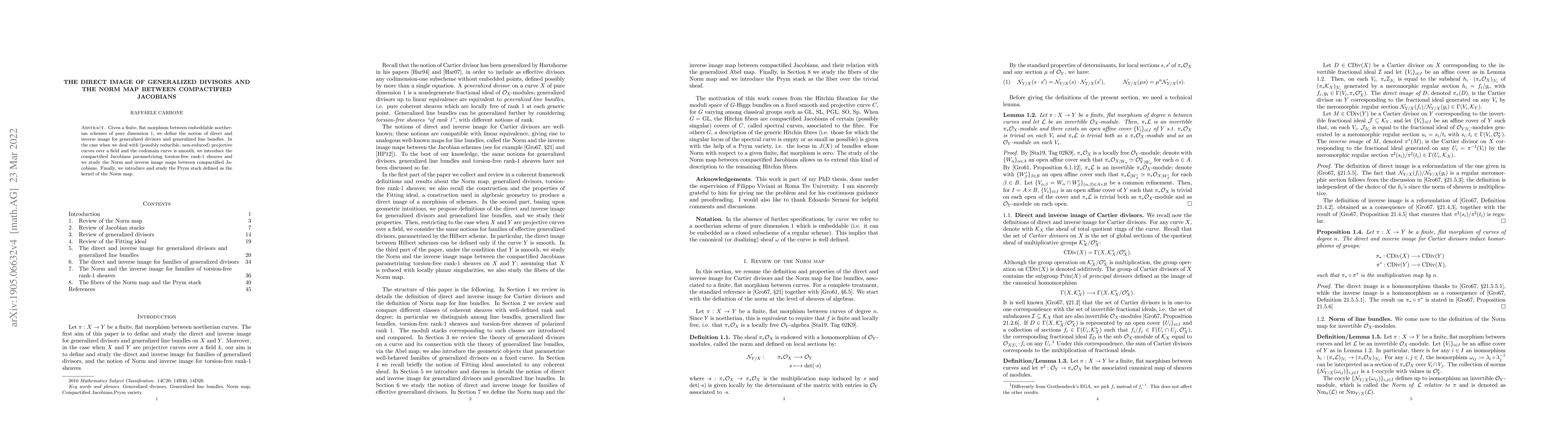 This paper defines direct and inverse image maps for generalized divisors and line bundles in the context of finite, flat morphisms between noetherian curves. It introduces compactified Jacobians for projective curves and studies the Norm map between them, along with the Prym stack as the kernel of this map.