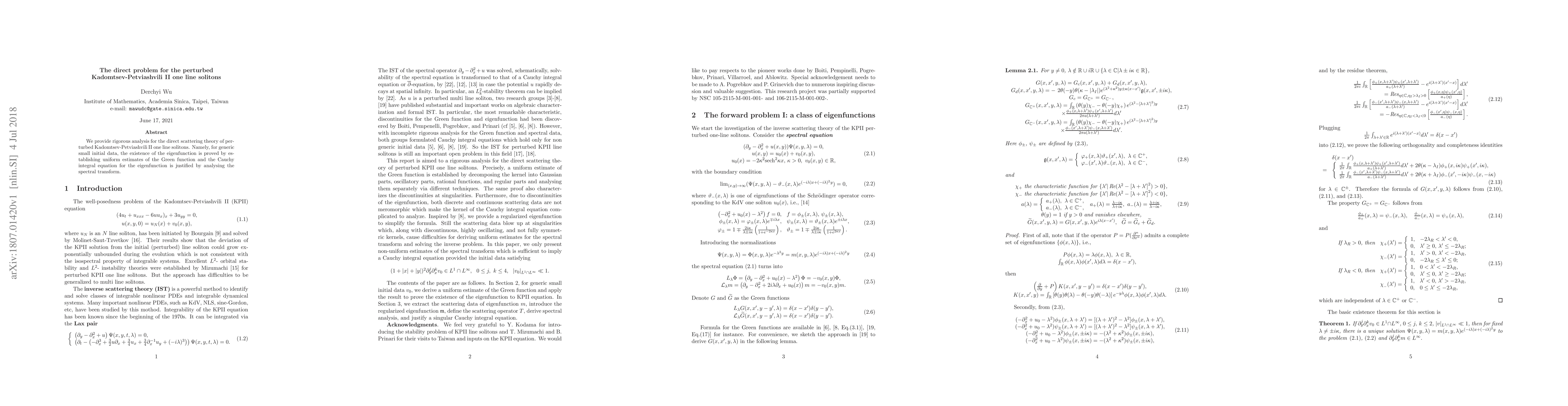 This paper rigorously analyzes the direct scattering theory of perturbed Kadomtsev-Petviashvili II one line solitons, proving the existence of eigenfunctions through uniform estimates and justifying the Cauchy integral equation via spectral transform analysis.