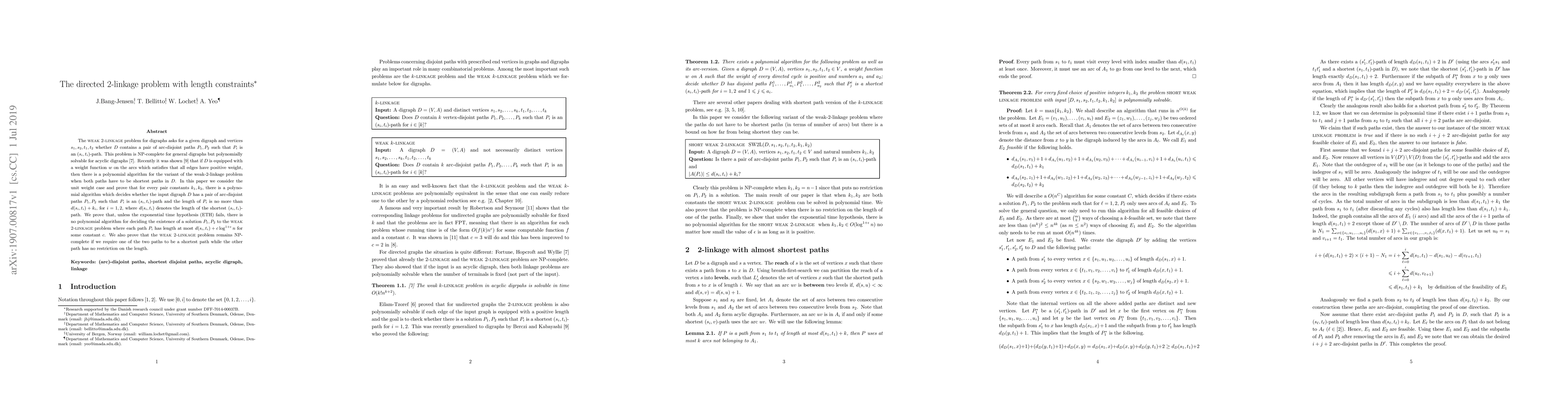 Researchers proved that for directed 2-linkage problems with length constraints, there is a polynomial algorithm to find arc-disjoint paths within a certain length limit, but no known polynomial solution exists if the path lengths can grow exponentially with n, unless exponential time hypothesis fails.