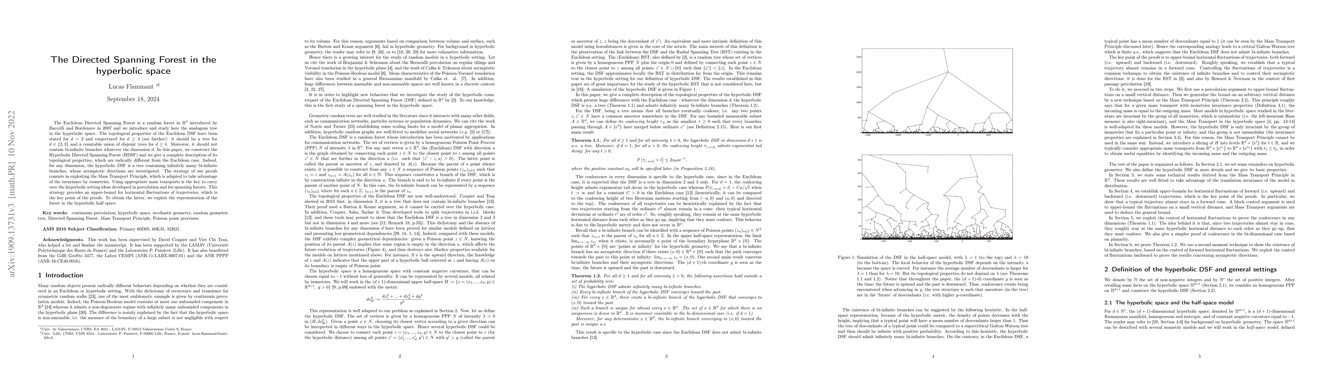 The Euclidean Directed Spanning Forest is a random forest in $\mathbb{R}^d$ introduced by Baccelli and Bordenave in 2007 and we introduce and study here the analogous tree in the hyperbolic space. The topological properties of the Euclidean DSF have been stated for $d=2$ and conjectured for $d \ge 3$ (see further): it should be a tree for $d \in \{2,3\}$ and a countable union of disjoint trees for $d \ge 4$. Moreover, it should not contain bi-infinite branches whatever the dimension $d$. In this paper, we construct the Hyperbolic Directed Spanning Forest (HDSF) and we give a complete description of its topological properties, which are radically different from the Euclidean case. Indeed, for any dimension, the hyperbolic DSF is a tree containing infinitely many bi-infinite branches, whose asymptotic directions are investigated. The strategy of our proofs consists in exploiting the Mass Transport Principle, which is adapted to take advantage of the invariance by isometries. Using appropriate mass transports is the key to carry over the hyperbolic setting ideas developed in percolation and for spanning forests. This strategy provides an upper-bound for horizontal fluctuations of trajectories, which is the key point of the proofs. To obtain the latter, we exploit the representation of the forest in the hyperbolic half space.