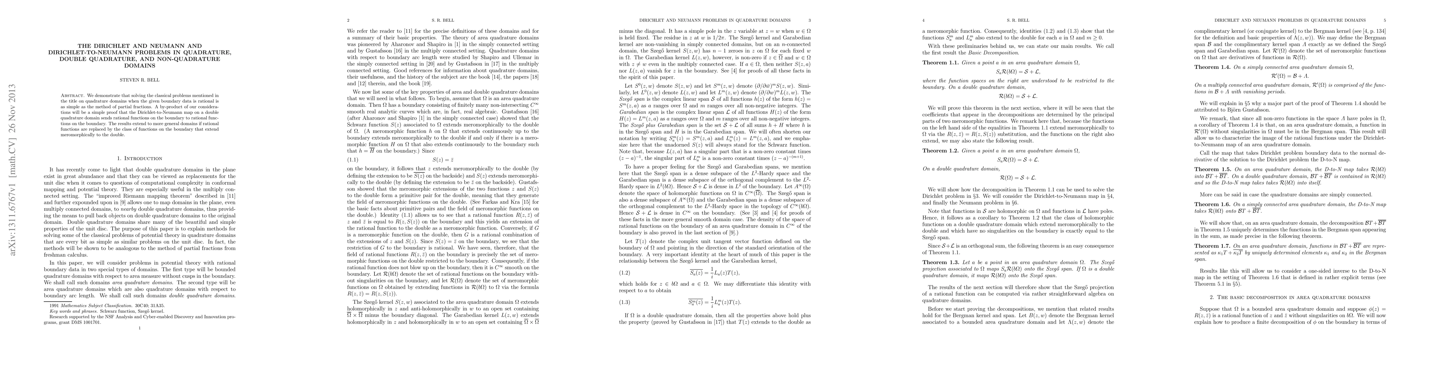 Summary: This paper simplifies solving Dirichlet and Neumann problems on quadrature domains with rational boundary data, analogous to the method of partial fractions. It also proves that the Dirichlet-to-Neumann map on double quadrature domains maps rational functions to rational functions, extending to more general domains with appropriate boundary function classes.