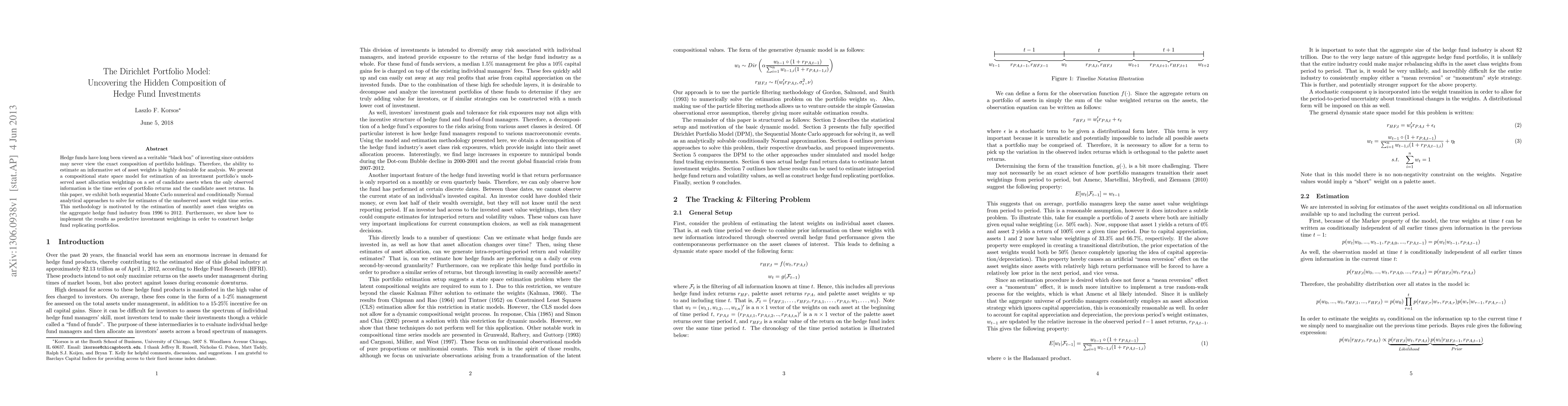 This paper introduces a compositional state space model to estimate the unobserved asset allocation of hedge funds using time series of portfolio and candidate asset returns. It employs both sequential Monte Carlo and conditionally Normal analytical methods to derive asset weight estimates, aiming to replicate the aggregate hedge fund industry's composition from 1996 to 2012 and construct hedge fund mimicking portfolios.