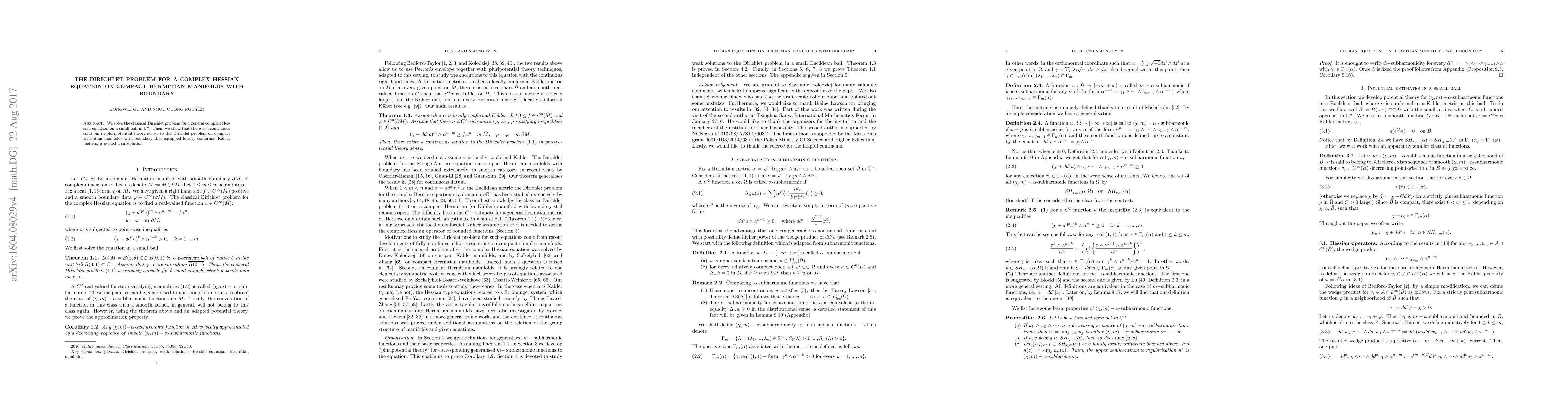 Summary: This paper solves the Dirichlet problem for a complex Hessian equation on a small ball in $\bC^n$ and extends the solution to compact Hermitian manifolds with boundary that have locally conformal Kähler metrics, provided a subsolution exists. The solution is shown to be continuous in the pluripotential theory sense.