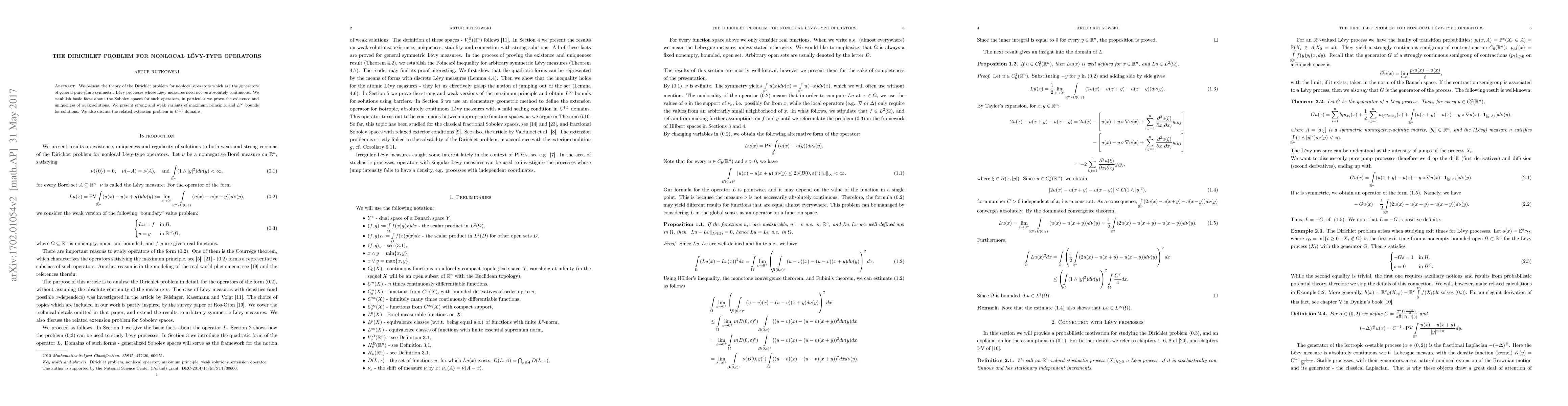 This paper develops the theory for the Dirichlet problem of nonlocal Lévy-type operators, proving the existence and uniqueness of weak solutions within Sobolev spaces and presenting maximum principles and L∞ bounds. It also addresses the extension problem in smooth domains.