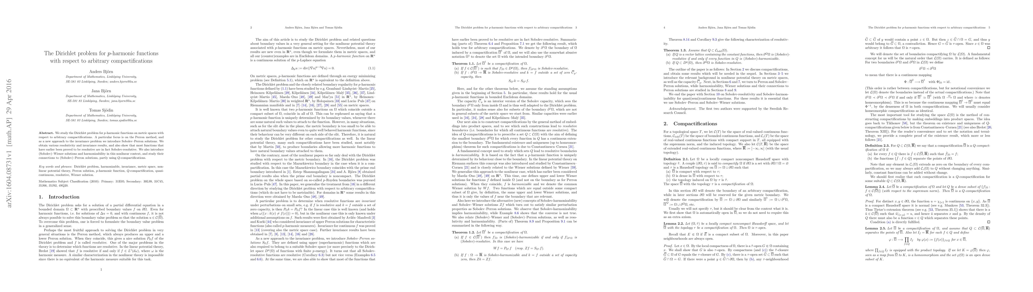 This paper explores the Dirichlet problem for p-harmonic functions on metric spaces, focusing on the Perron method and introducing Sobolev-Perron solutions for resolutivity and invariance. It establishes connections between Sobolev-Perron solutions and (Sobolev)-Wiener solutions, employing Q-compactifications to study these nonlinear harmonic functions.