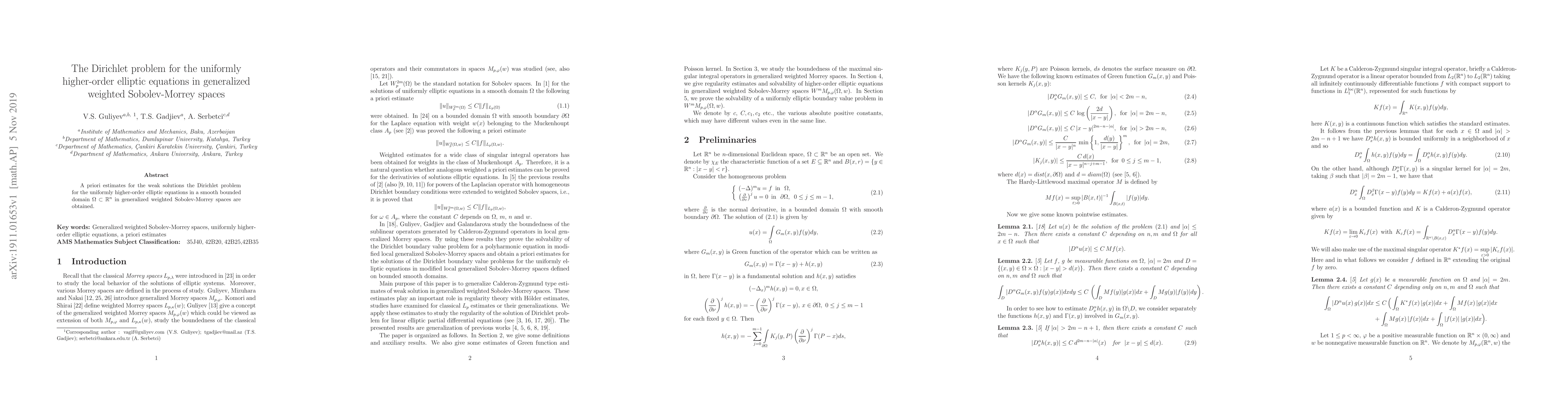 This paper provides a priori estimates for weak solutions to the Dirichlet problem for uniformly higher-order elliptic equations in smooth bounded domains using generalized weighted Sobolev-Morrey spaces. The results contribute to understanding the regularity of solutions in these advanced function spaces.