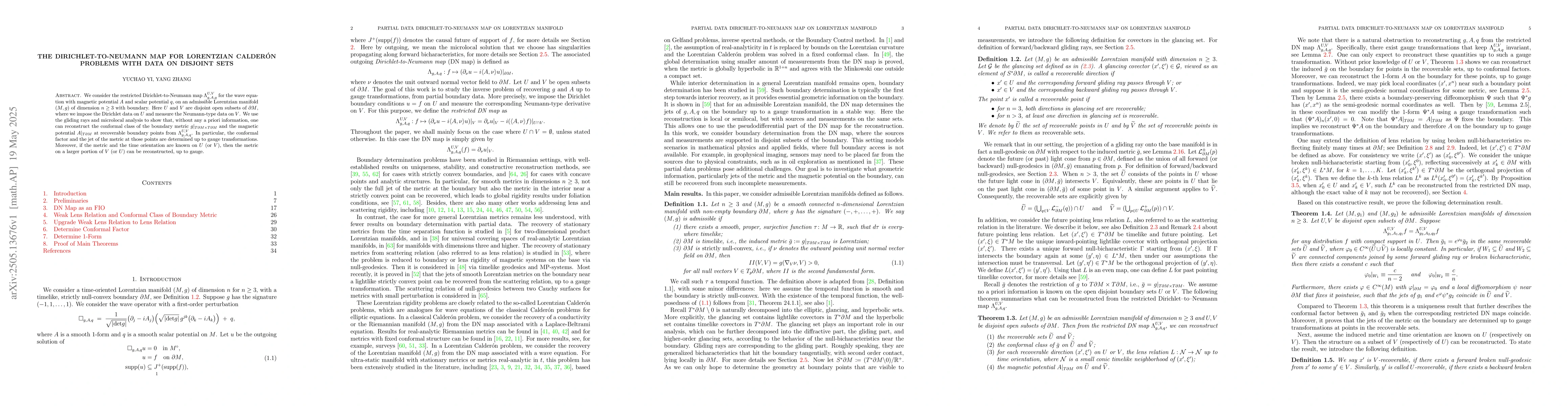Researchers developed a method to reconstruct the boundary metric and magnetic potential from Dirichlet-to-Neumann map data on disjoint sets of a Lorentzian manifold.