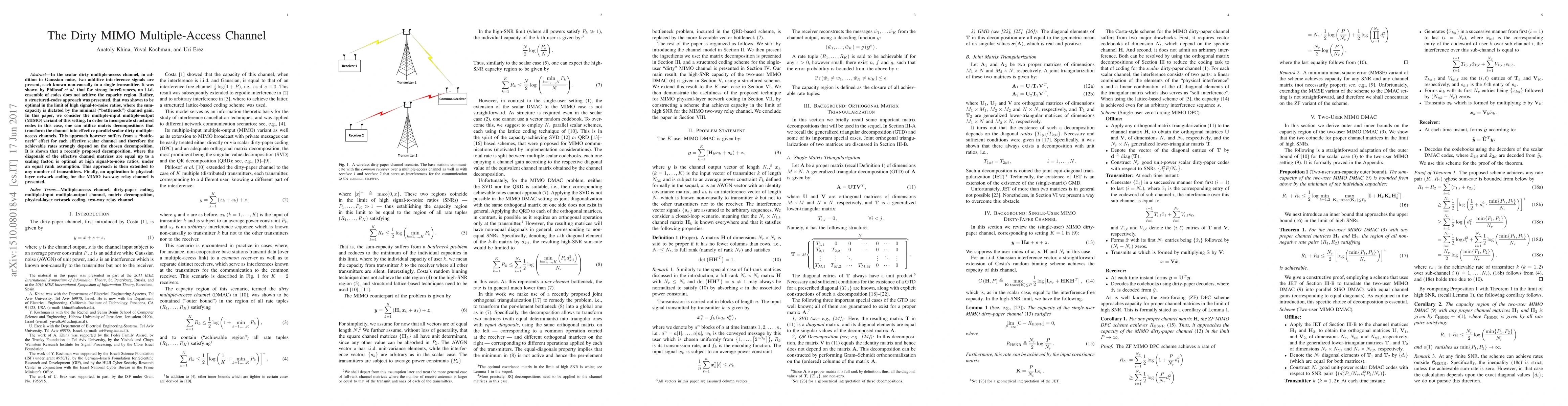 This paper explores the MIMO variant of the scalar dirty multiple-access channel, demonstrating that structured codes utilizing matrix decompositions can achieve optimal performance at high signal-to-noise ratios. It proposes a decomposition method that balances effective scalar channels, showing its optimality for equal rank assumptions and extending it to multiple transmitters.