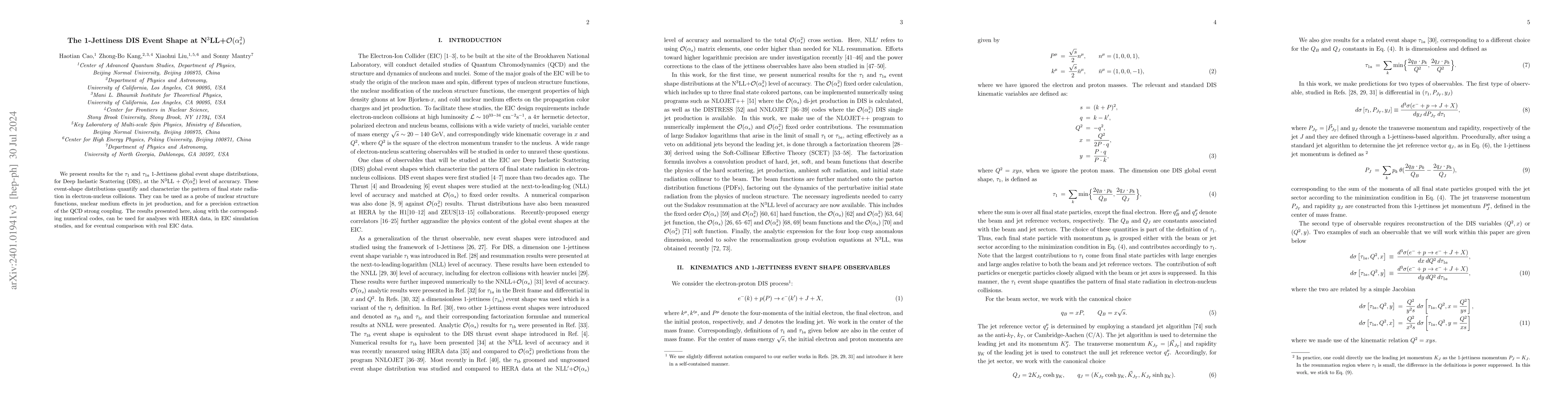 This paper presents precise calculations for the 1-Jettiness event shapes in Deep Inelastic Scattering at N$^3$LL+${\cal O}(\alpha_s^2)$ accuracy, providing insights into final state radiation patterns in electron-nucleus collisions and applications in nuclear structure studies and QCD coupling extraction. The results and codes are intended for HERA data analysis, EIC simulations, and comparisons.