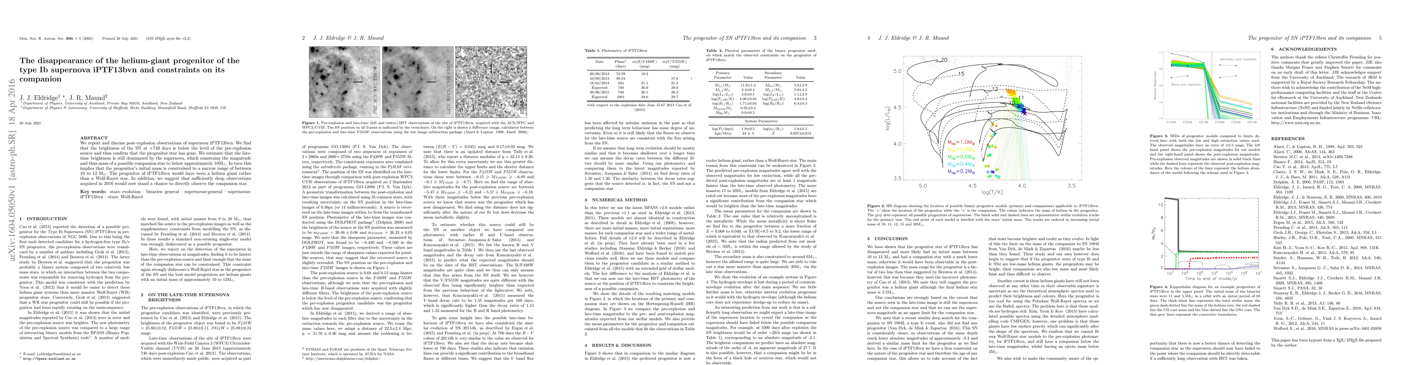 Researchers confirm that the progenitor star of type Ib supernova iPTF13bvn has disappeared, constraining its initial mass to 10-12 solar masses. The study also suggests that a possible companion star could be observed directly with deep observations.