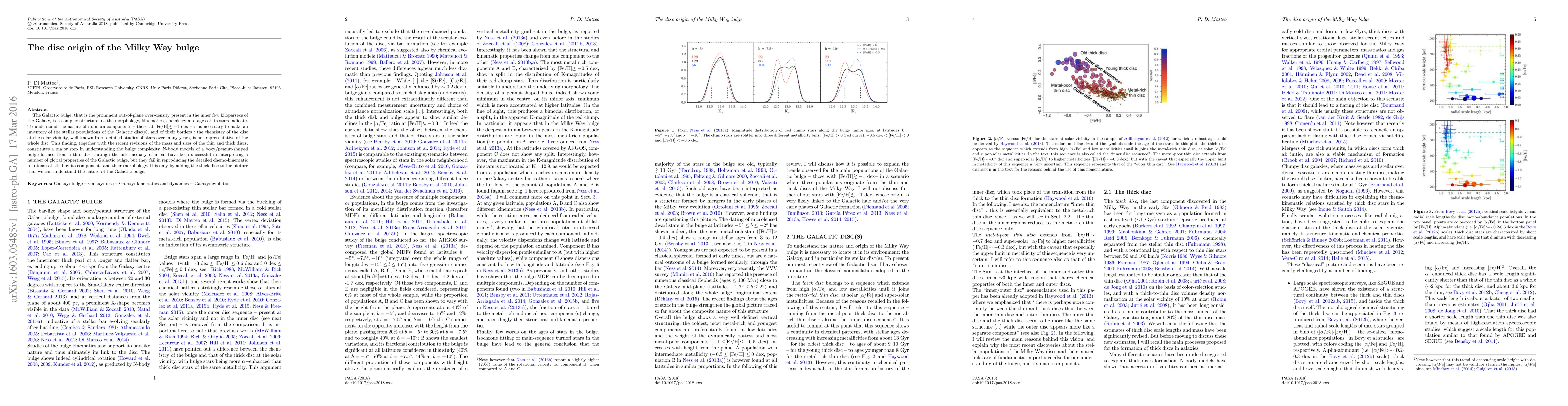 This paper investigates the complex structure of the Milky Way's bulge, emphasizing the necessity of considering the stellar populations of the Galactic disc(s) to understand its main components. The inclusion of the thick disc in N-body models provides a better interpretation of the bulge's detailed chemo-kinematic relations and morphology.