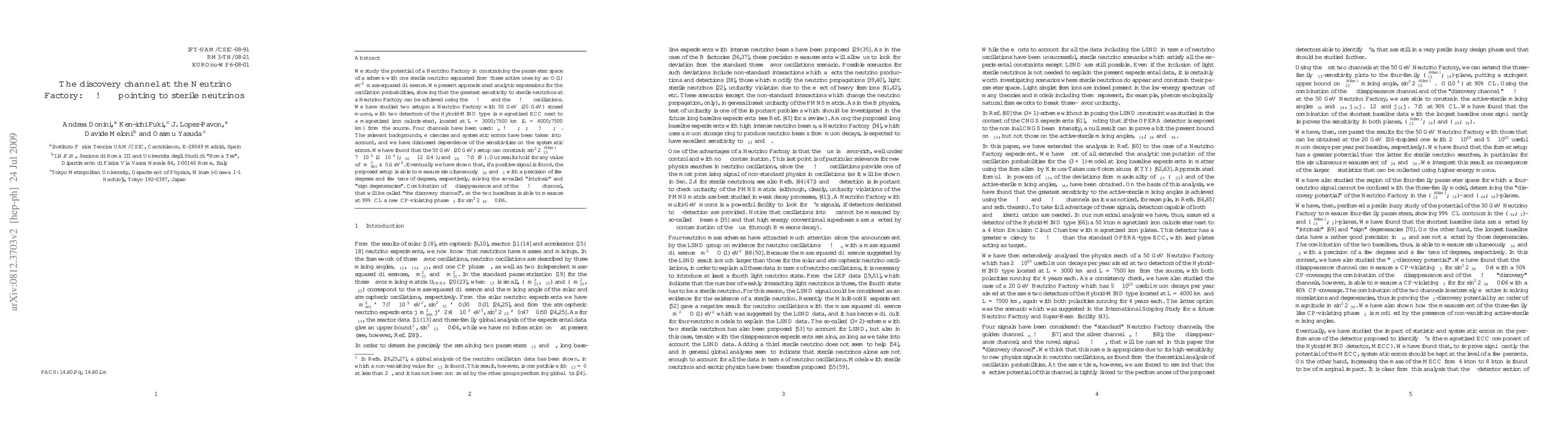 We study the potential of a Neutrino Factory in constraining the parameter space of a scheme with one sterile neutrino separated from three active ones by an O(1) eV^2, mass-squared difference. We present approximated analytic expressions for the oscillation probabilities, showing that the greatest sensitivity to sterile neutrinos at a Neutrino Factory can be achieved using the \nu_\mu ->\nu_\mu and the \nu_\mu ->\nu_\tau oscillations. We have studied two setups: a Neutrino Factory with 50 GeV (20 GeV) stored muons, with two detectors of the Hybrid-MIND type (a magnetized ECC next to a magnetized iron calorimeter), located at L=3000, 7500 km (L=4000, 7500 km) from the source. Four channels have been used: \nu_e -> \nu_\mu,\nu_\tau; \nu_\mu -> \nu_\mu,\nu_\tau. The relevant backgrounds, efficiencies and systematic errors have been taken into account, and we have discussed dependence of the sensitivities on the systematic errors. We have found that the 50 GeV (20 GeV) setup can constrain \sin^2 2 \theta^{(4fam)}_{13} <= 7x10^{-5} (2x10^{-4}); \theta_{34} <= 12 deg (14 deg); and \theta_{24}<= 7.5 deg (8 deg). Our results hold for any value of \Delta m^2_{Sbl} >~ 0.1 eV^2. Eventually we have shown that, if a positive signal is found, the proposed setup is able to measure simultaneously \theta_{34} and \delta_3 with a precision of few degrees and few tens of degrees, respectively, solving the so-called "intrinsic" and "sign degeneracies". Combination of \nu_\mu disappearance and of the \nu_\mu ->\nu_\tau channel, that will be called "the discovery channel", at the two baselines is able to measure at 99% CL a new CP-violating phase \delta_3 for \sin^2 2 \theta_{34} >= 0.06.