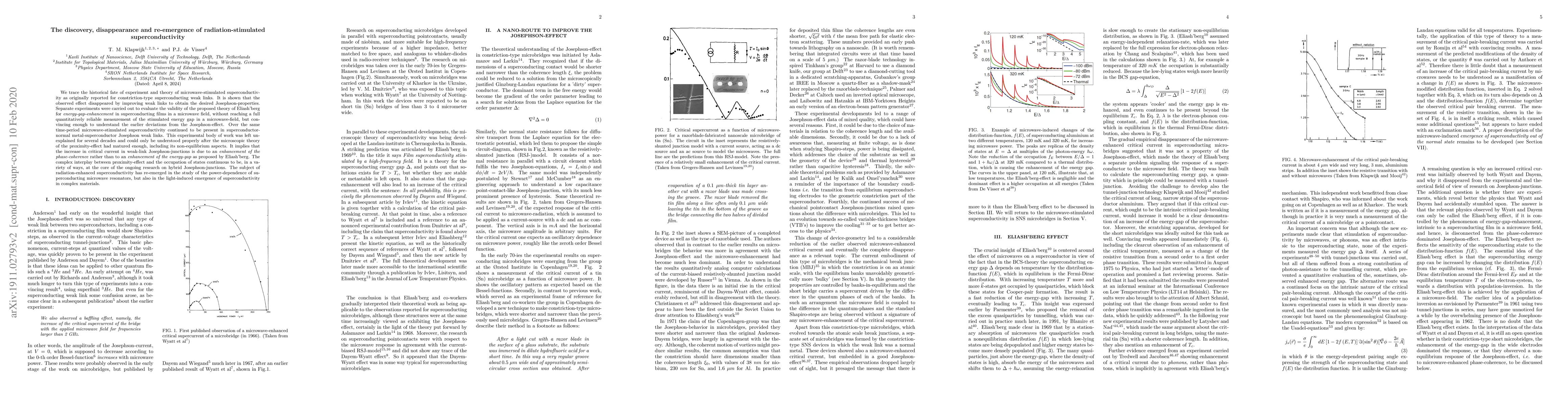 We trace the historical fate of experiment and theory of microwave-stimulated superconductivity as originally reported for constriction-type superconducting weak links. It is shown that the observed effect disappeared by improving weak links to obtain the desired Josephson-properties. Separate experiments were carried out to evaluate the validity of the proposed theory of Eliash'berg for $\textit{energy-gap-enhancement}$ in superconducting films in a microwave field, without reaching a full quantitatively reliable measurement of the stimulated energy gap in a microwave-field, but convincing enough to understand the earlier deviations from the Josephson-effect. Over the same time-period microwave-stimulated superconductivity continued to be present in superconductor-normal metal-superconductor Josephson weak links. This experimental body of work was left unexplained for several decades and could only be understood properly after the microscopic theory of the proximity-effect had matured enough, including its non-equilibrium aspects. It implies that the increase in critical current in weak-link Josephson-junctions is due to an $\textit{enhancement of the phase-coherence}$ rather than to an $\textit{enhancement of the energy-gap}$ as proposed by Eliash'berg. The complex interplay between proximity-effect and the occupation of states continuous to be, in a variety of ways, at the core of the ongoing research on hybrid Josephson-junctions. The subject of radiation-enhanced superconductivity has re-emerged in the study of the power-dependence of superconducting microwave resonators, but also in the light-induced emergence of superconductivity in complex materials.