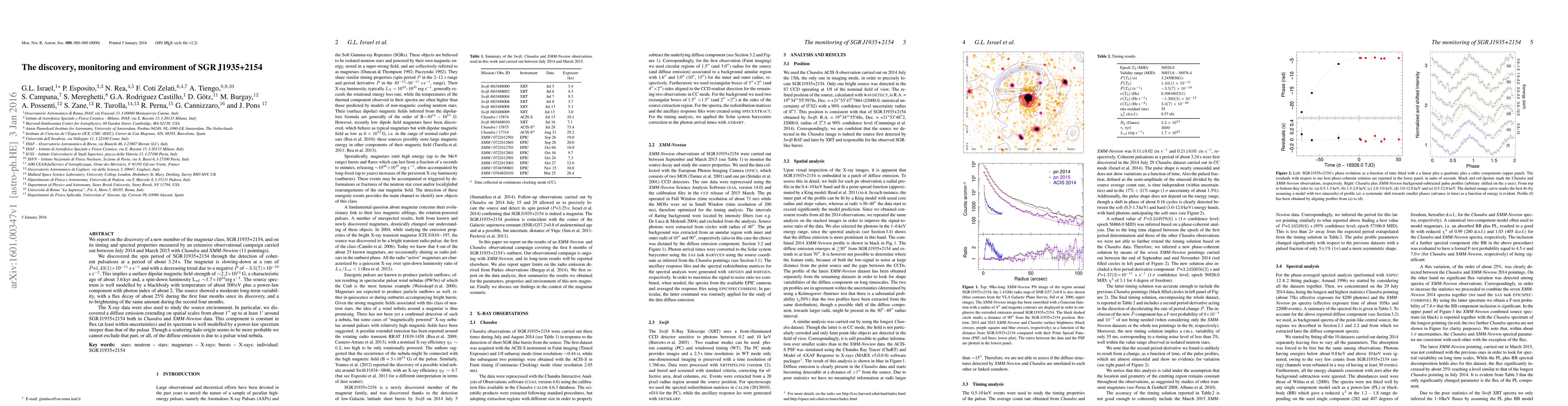 A new magnetar, SGR J1935+2154, was discovered with its spin period and environment studied through extensive Chandra and XMM-Newton observations. Key findings include the source's slowing-down rate, magnetic field strength, and variability patterns.