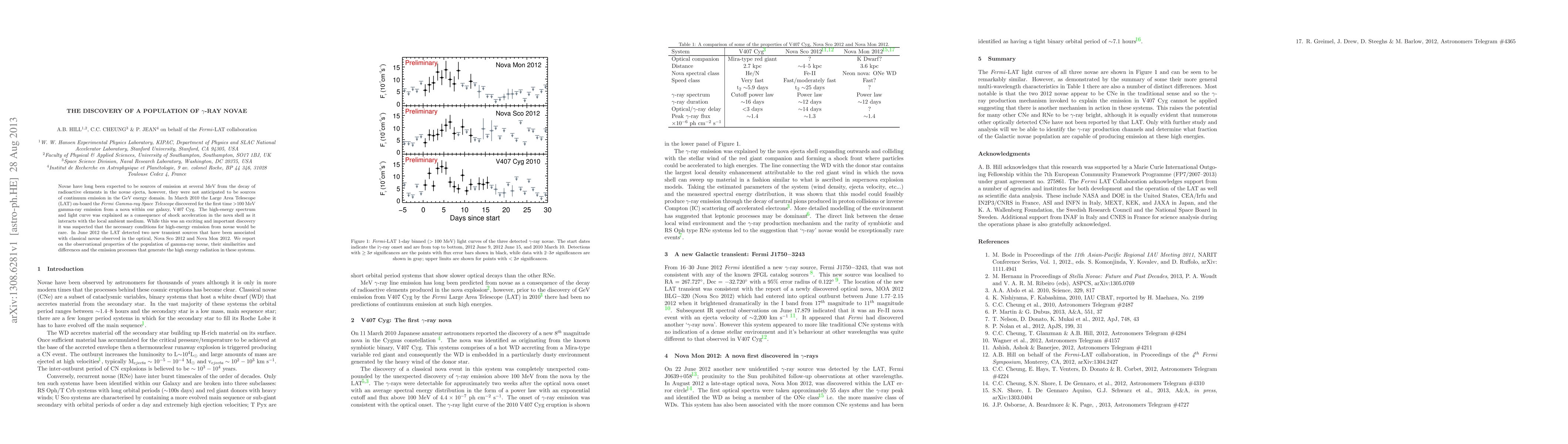 The research paper reports the discovery of gamma-ray novae, previously unpredicted sources of GeV continuum emission, first observed in V407 Cyg in 2010, and later in Nova Sco 2012 and Nova Mon 2012, with high-energy emission attributed to shock acceleration in the nova ejecta. The study explores the properties and emission mechanisms of this newly identified population of gamma-ray novae.