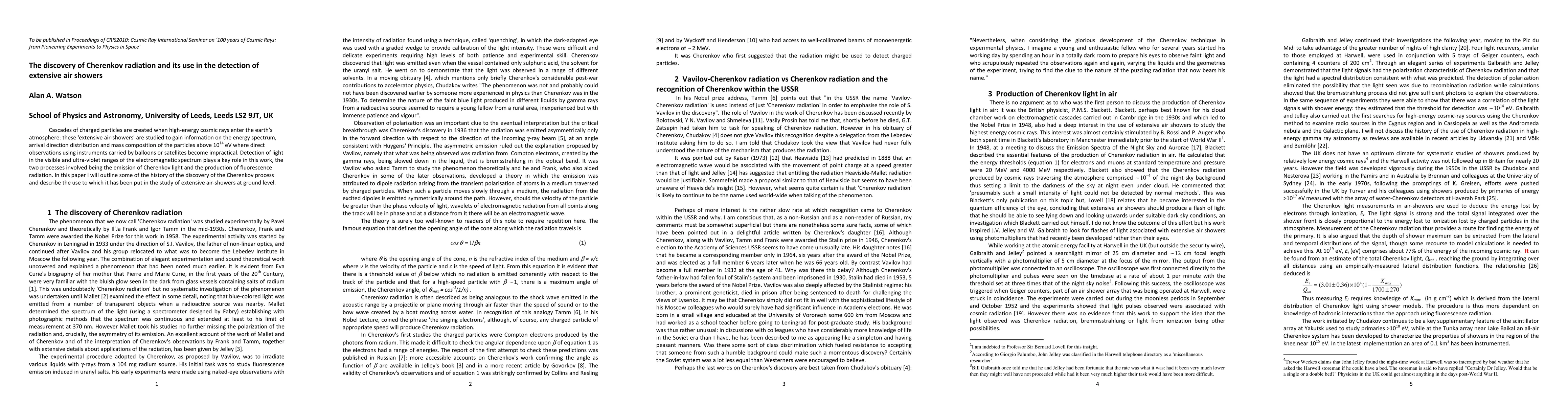 Cascades of charged particles are created when high-energy cosmic rays enter the earth's atmosphere: these 'extensive air-showers' are studied to gain information on the energy spectrum, arrival direction distribution and mass composition of the particles above 1014 eV where direct observations using instruments carried by balloons or satellites become impractical. Detection of light in the visible and ultra-violet ranges of the electromagnetic spectrum plays a key role in this work, the two processes involved being the emission of Cherenkov light and the production of fluorescence radiation. In this paper I will outline some of the history of the discovery of the Cherenkov process and describe the use to which it has been put in the study of extensive air-showers at ground level.